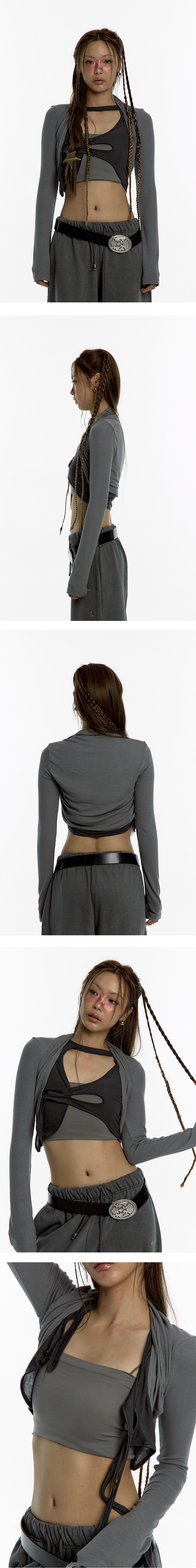 카시코 어시메트릭 버튼 볼레로 가디건 차콜