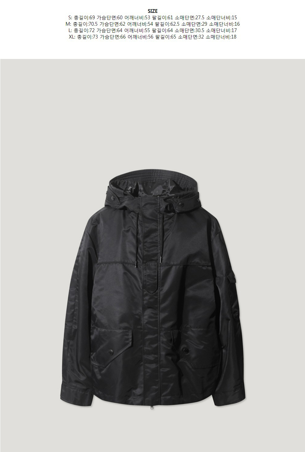 이로 후드 나일론 세미오버 점퍼