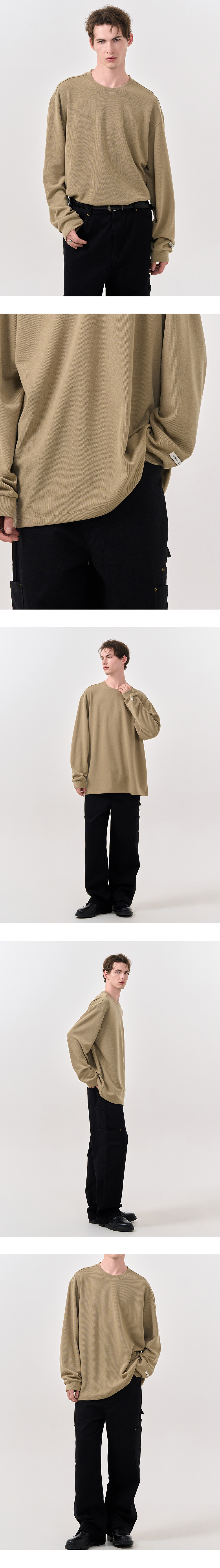 제너럴아이디어 유니섹스 베이직 사카리바 롱 슬리브 티 베이지