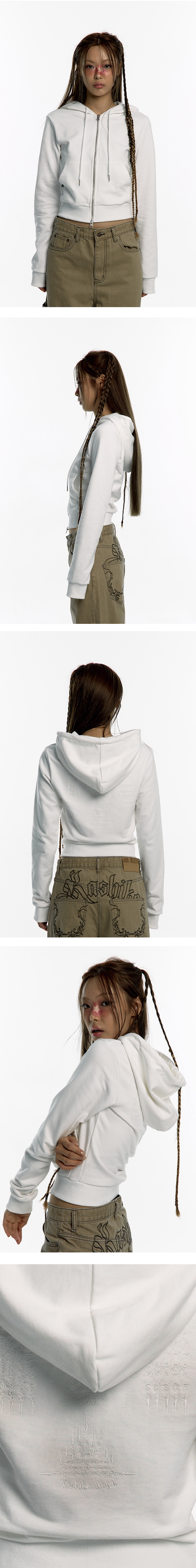 싹얀 타투 형상의 자수가 은은하게 놓아진 슬림핏 후드 집업입니다.