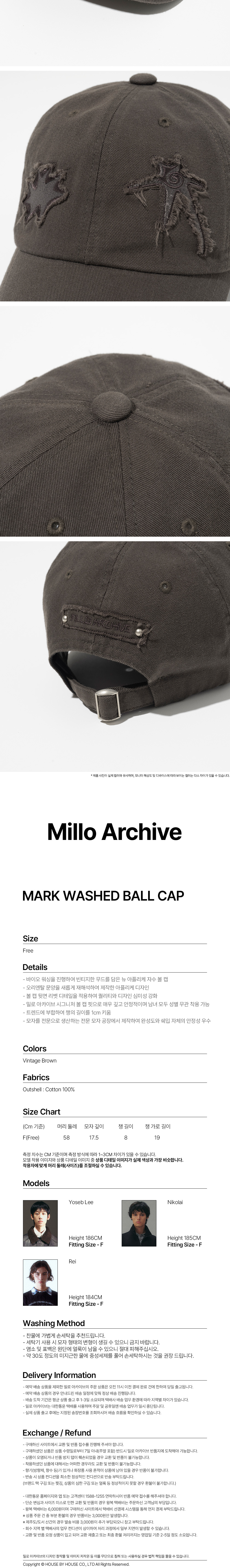 - 바이오 워싱을 진행하여 빈티지한 무드를 담은 뉴 아플리케 자수 볼 캡 - 오리엔탈 문양을 새롭게 재해석하여 제작한 아플리케 디자인 - 볼 캡 뒷면 리벳 디테일을 적용하여 퀄리티와 디자인 심미성 강화 - 밀로 아카이브 시그니처 볼 캡 핏으로 매우 깊고 안정적이며 남녀 모두 성별 무관 착용 가능 - 트렌드에 부합하여 챙의 길이를 1cm 키움 - 모자를 전문으로 생산하는 전문 모자 공장에서 제작하여 완성도와 쉐입 자체의 안정성 우수