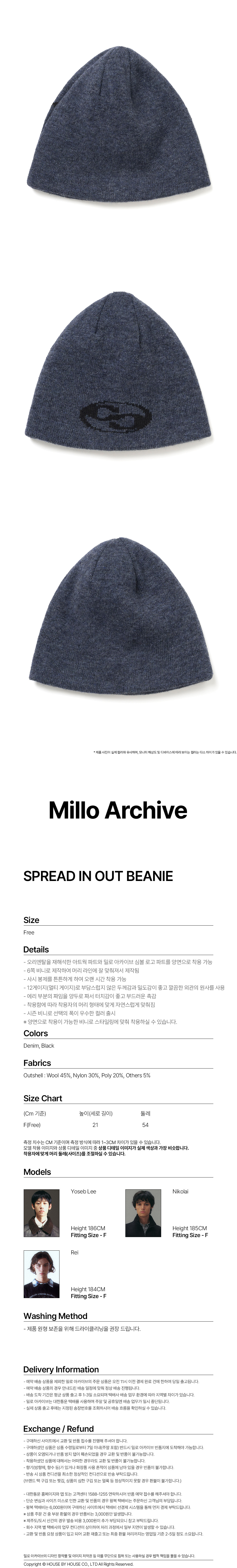 밀로 아카이브 스프레드 인아웃 비니 데님