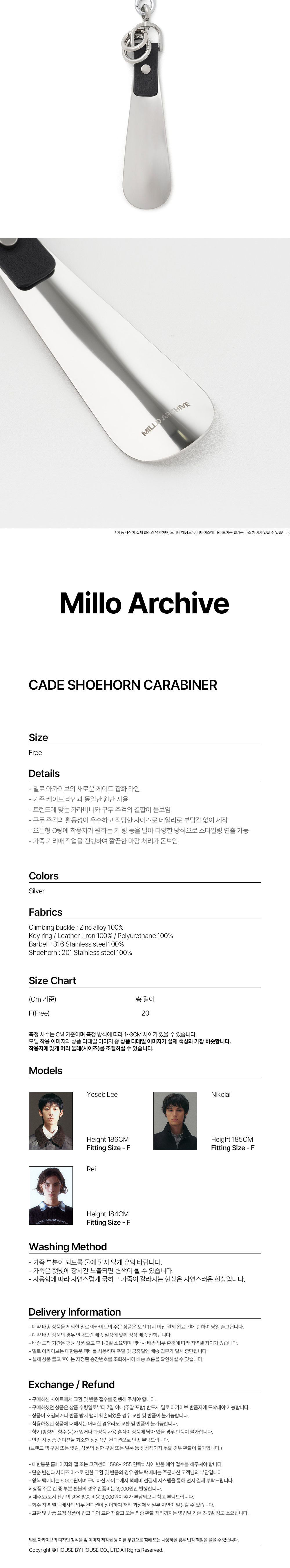 - 밀로 아카이브의 새로운 케이드 잡화 라인 - 기존 케이드 라인과 동일한 원단 사용 - 트렌드에 맞는 카라비너와 구두 주걱의 결합이 돋 보임 - 구두 주걱의 활용성이 우수하고 적당한 사이즈로 데일리로 부담감 없이 제작 - 오픈형 O링에 착용자가 원하는 키 링 등을 달아 다양한 방식으로 스타일링 연출 가능 - 가죽 기리매 작업을 진행하여 깔끔한 마감 처리가 돋보임