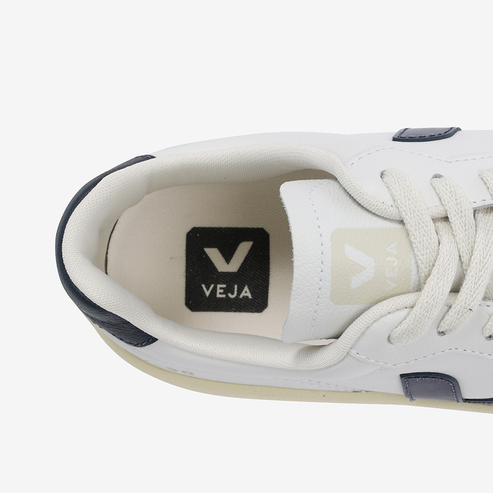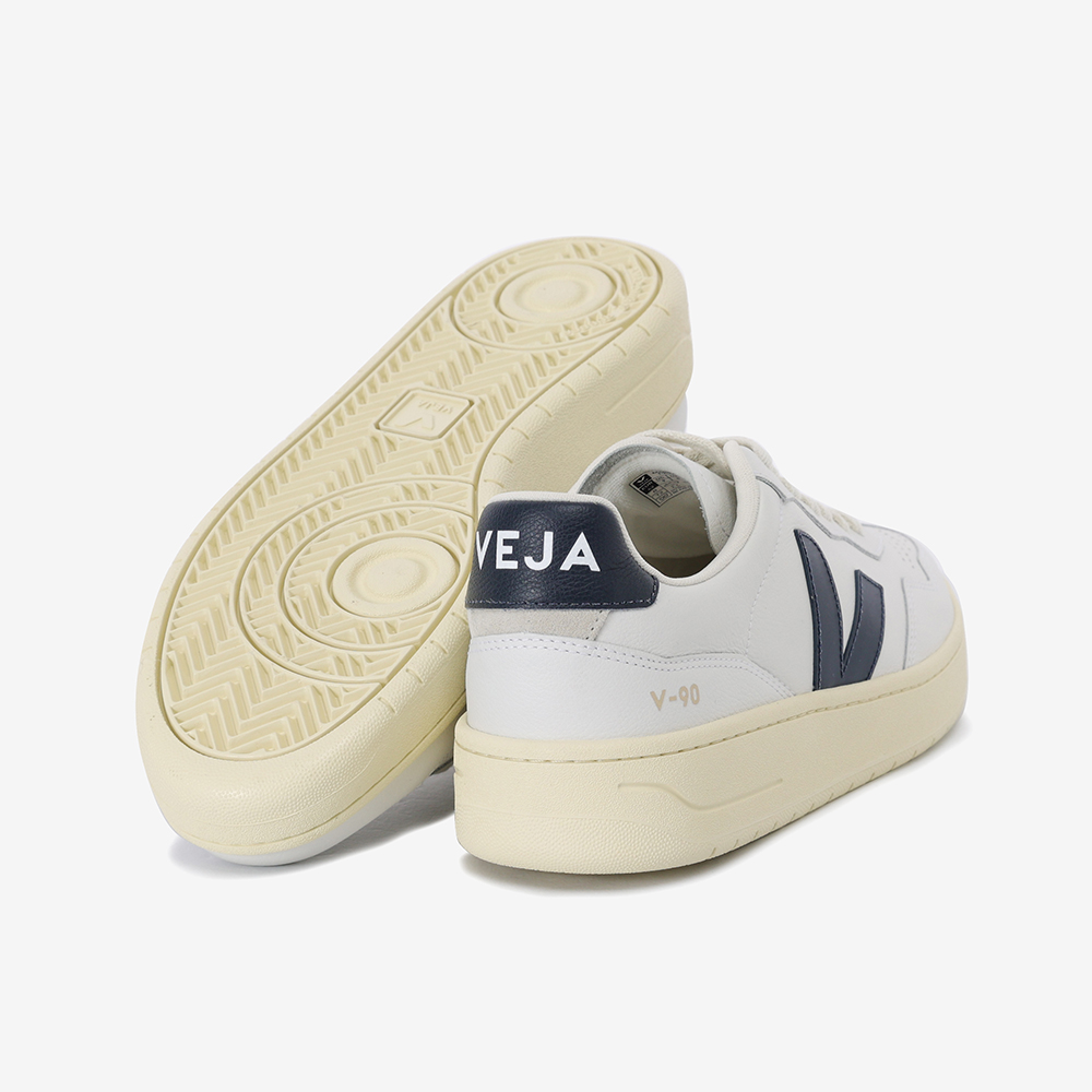V-10의 업그레이드 버전 V-90. V-10이 세미 미드컷으로 발목을 안정적으로 잡아주었다면 V-90은 비교적 낮은 힐탭으로 더욱 편안한 착화감을 제공한다. VEJA의 시그니처 V로고와 힐탭 컬러를 매치하여 전체적인 컬러 밸런스를 맞추었다. 100% 오가닉 코튼 소재의 슈레이스를 사용하였다.