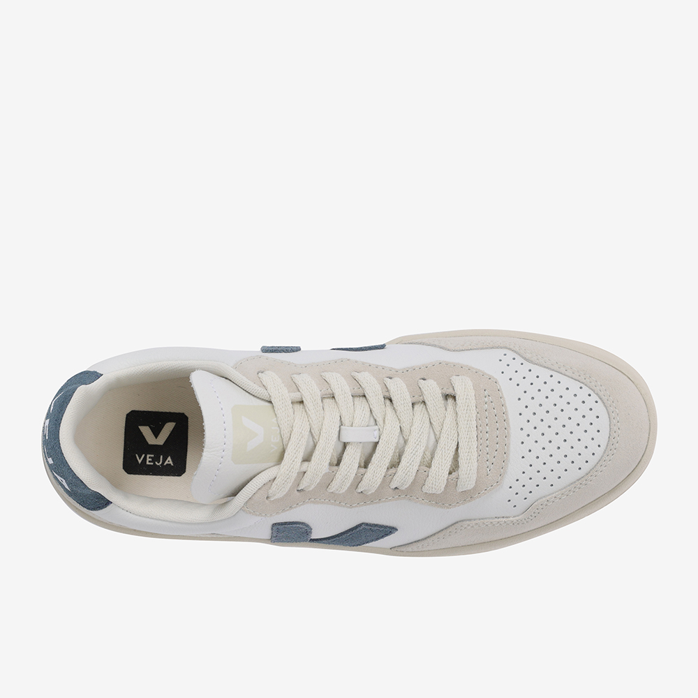 V-10의 업그레이드 버전 V-90. V-10이 세미 미드컷으로 발목을 안정적으로 잡아주었다면 V-90은 비교적 낮은 힐탭으로 더욱 편안한 착화감을 제공한다. VEJA의 시그니처 V로고와 힐탭 컬러를 매치하여 전체적인 컬러 밸런스를 맞추었다. 100% 오가닉 코튼 소재의 슈레이스를 사용하였다.
