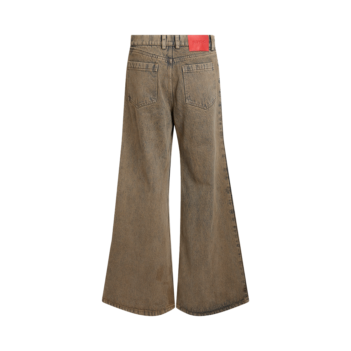 녹슨 듯한 색감과 넉넉한 실루엣이 매력적인 쿠시코크의 오버사이즈 데님 팬츠입니다. - 미드라이즈 디자인 - 와이드한 실루엣 - 지퍼 플라이 - 후면 로고 패치