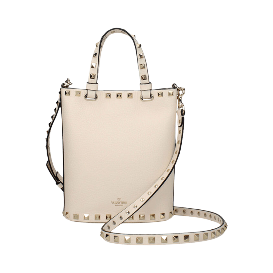 발렌티노 락스터드 크로스바디 파우치 그레이니 카프스킨 아이보리