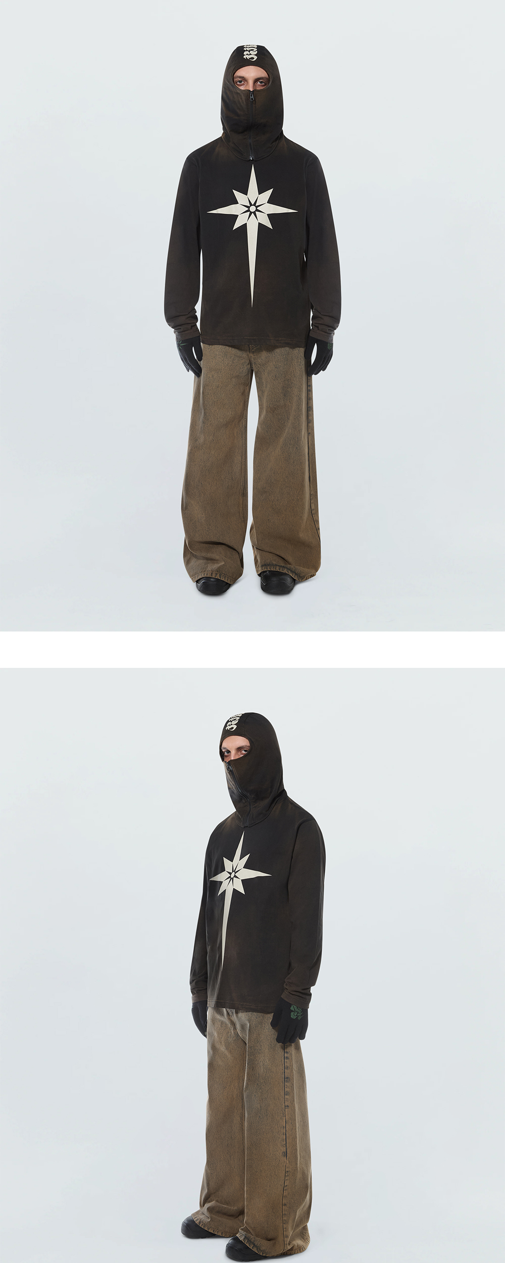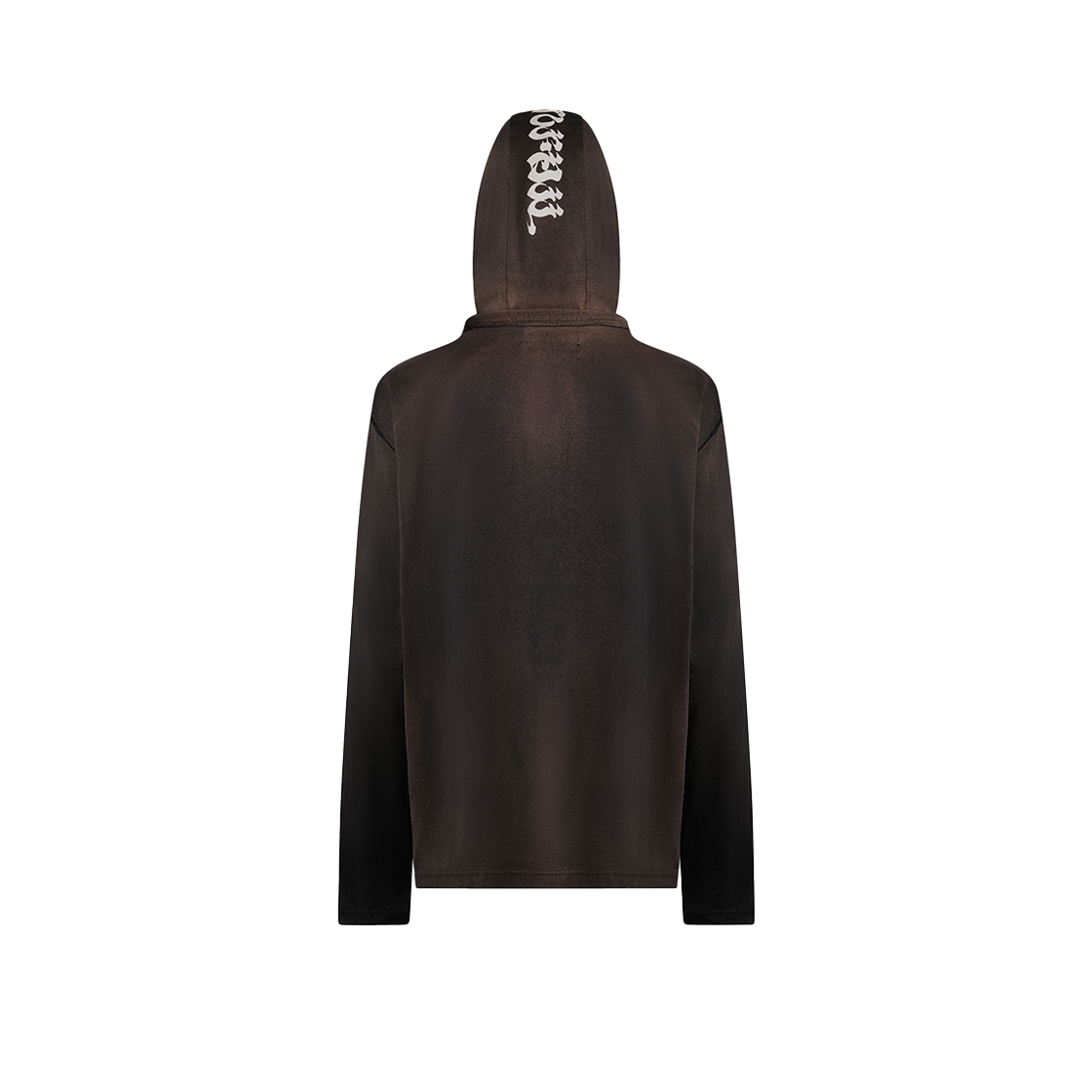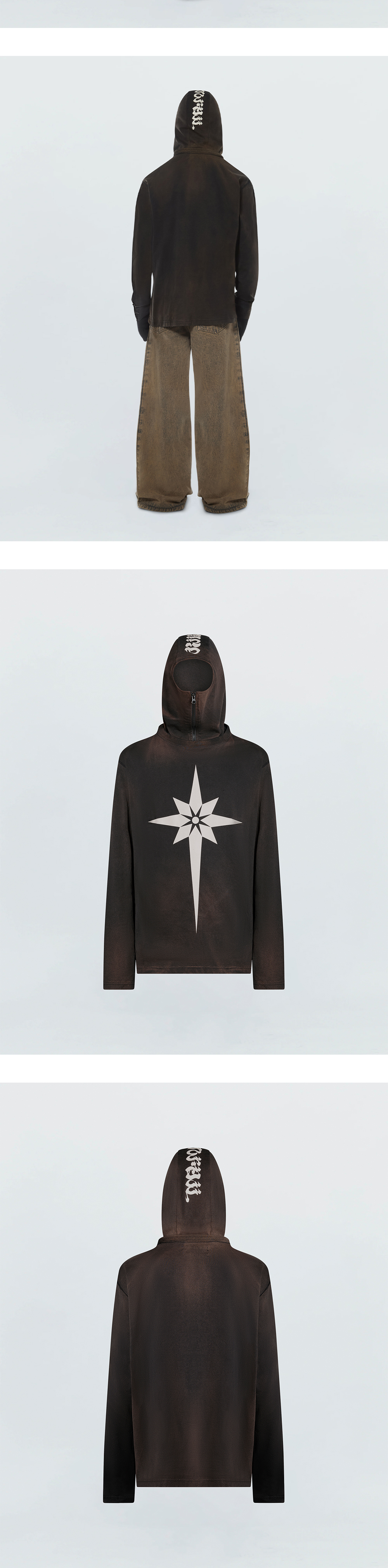 물 빠진 듯한 색감과 독특한 스타일의 후드가 매력적인 쿠시코크의 마스크 롱 슬리브 티셔츠입니다. - 코튼 져지 원단 - 페이딩 처리된 디자인 - 후드 'RIGHT TO FAIL' 그래픽 프린팅 - 전면 로고 그래픽 프린팅 - 바라클라바 스타일의 지퍼 후드
