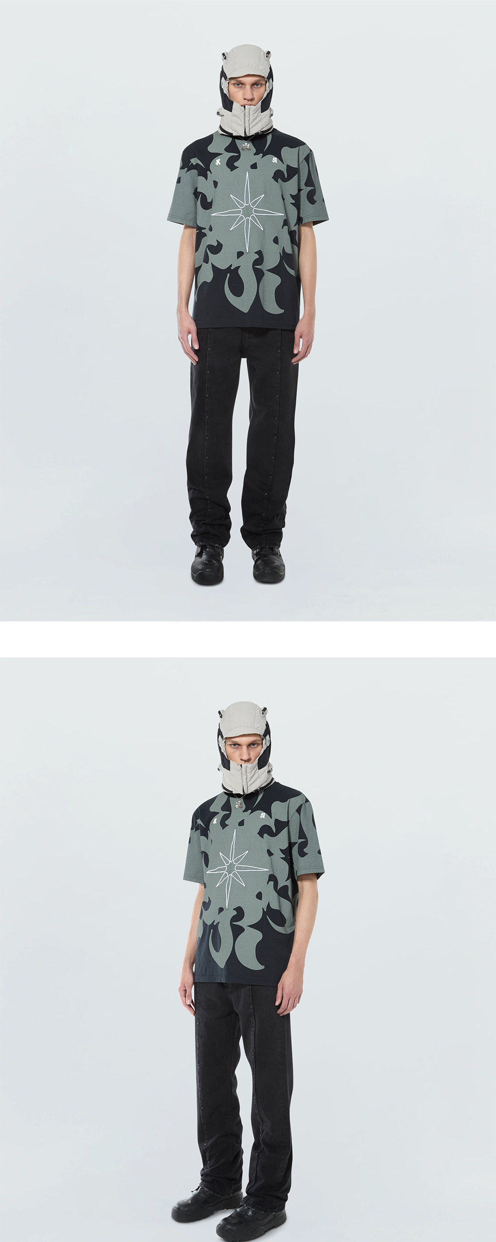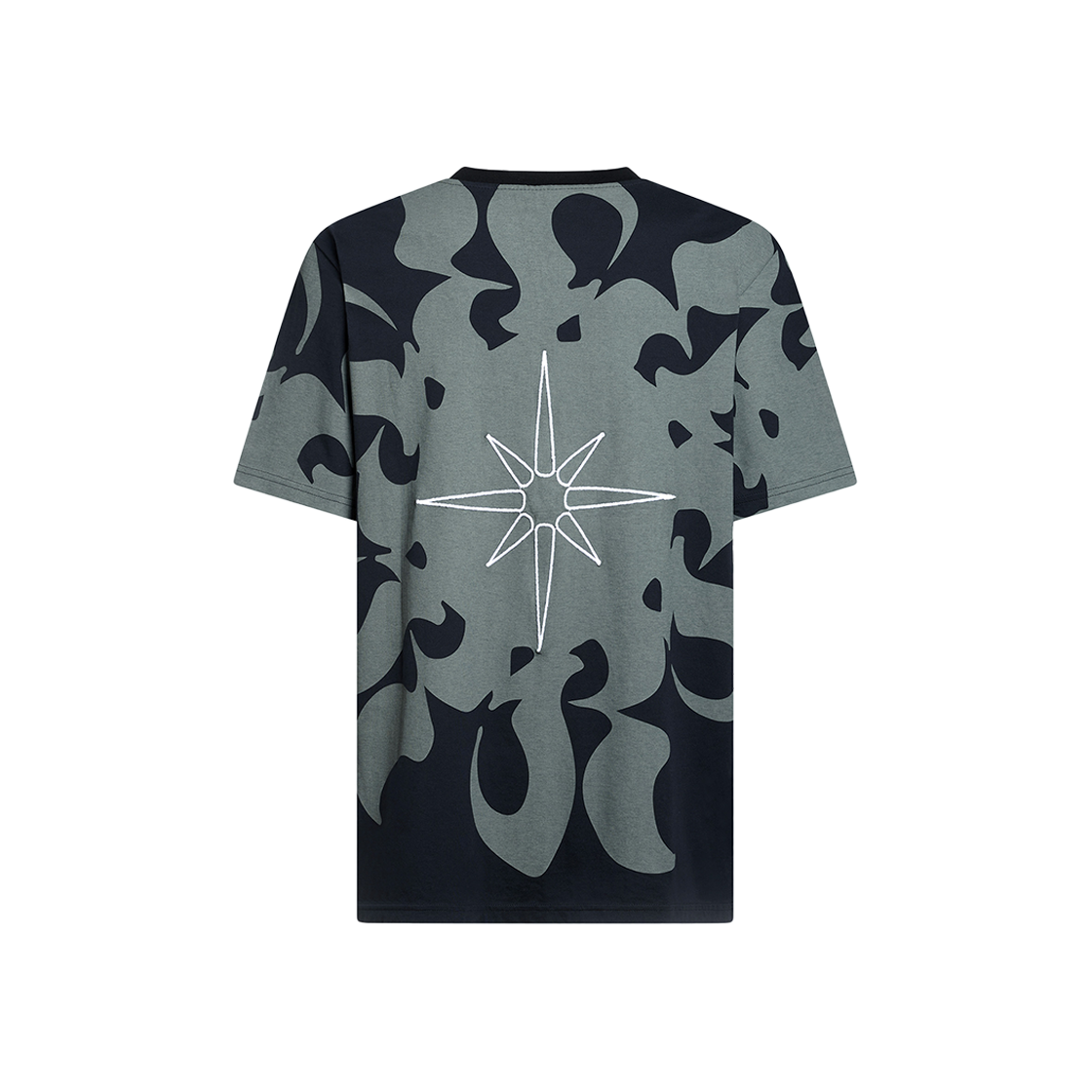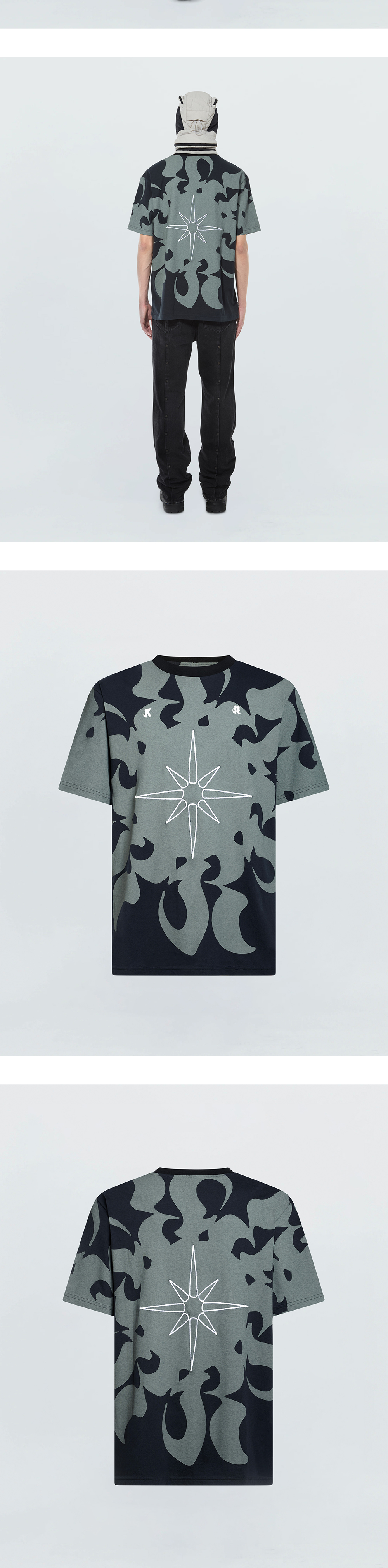 강렬한 태양이 떠오르는 그래픽에 더해진 시그니처 자수가 매력적인 쿠시코크의 로고 프린트 티셔츠입니다. - 코튼 져지 원단 - 전체적으로 적용된 그래픽 디자인 - 전/후면 그래픽 자수 디테일
