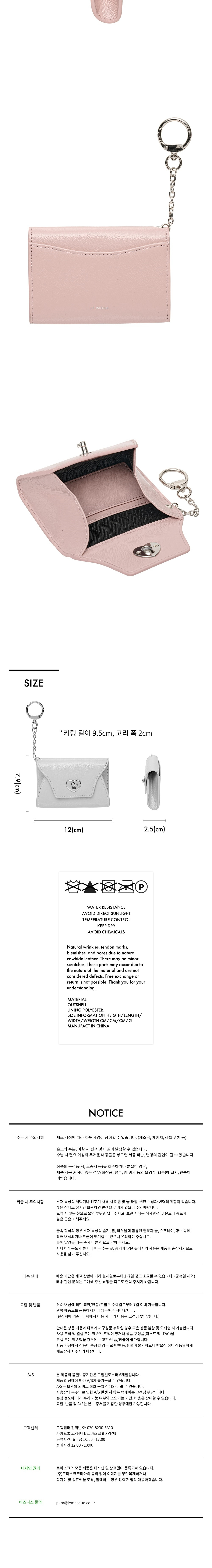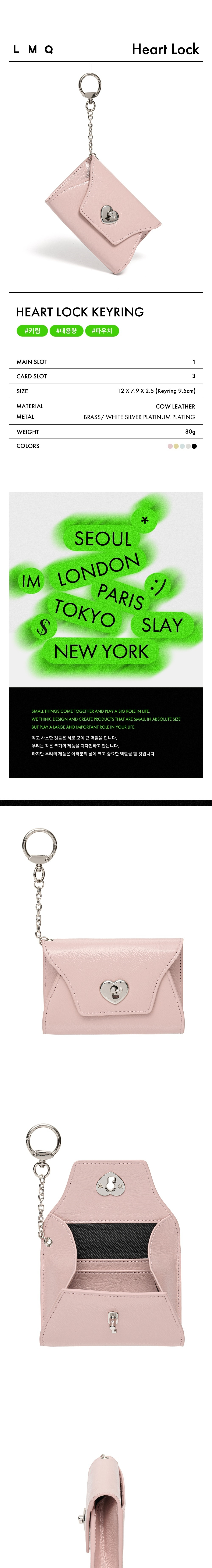 르마스크 하트락 키링 멀티 파우치 카드 월렛 베이비 핑크