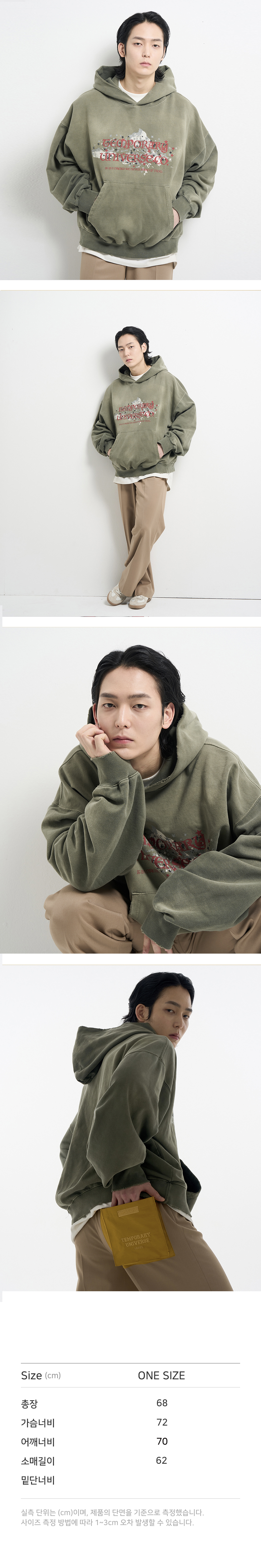템포러리 유니버스 가먼트 다이드 빈티지 워시드 오버사이즈 후드 그린