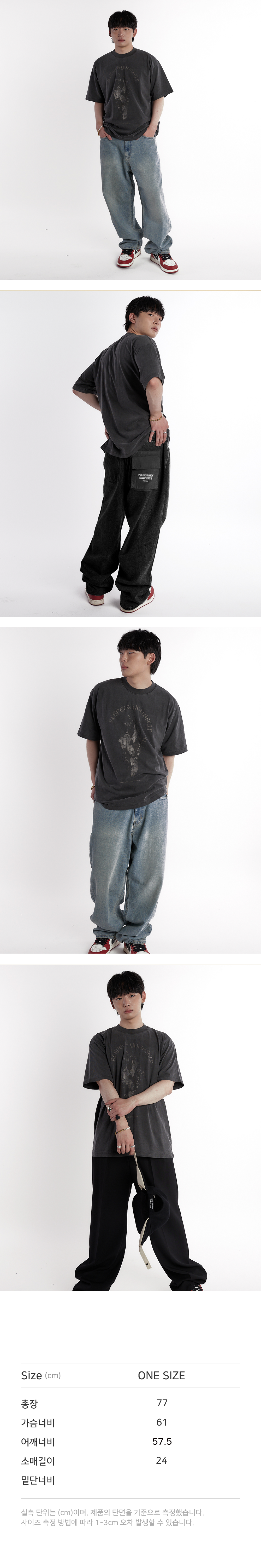 템포러리 유니버스 가먼트 다이드 빈티지 워시드 오버사이즈 티셔츠 그레이