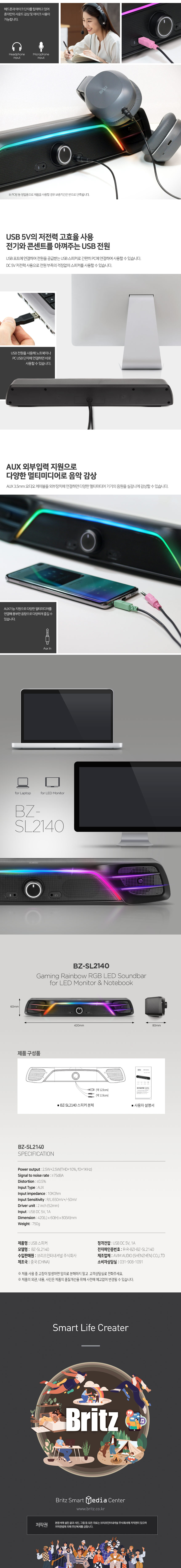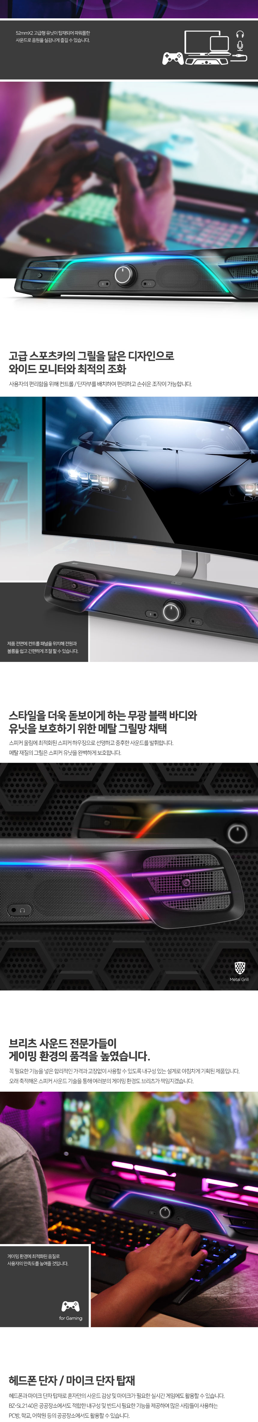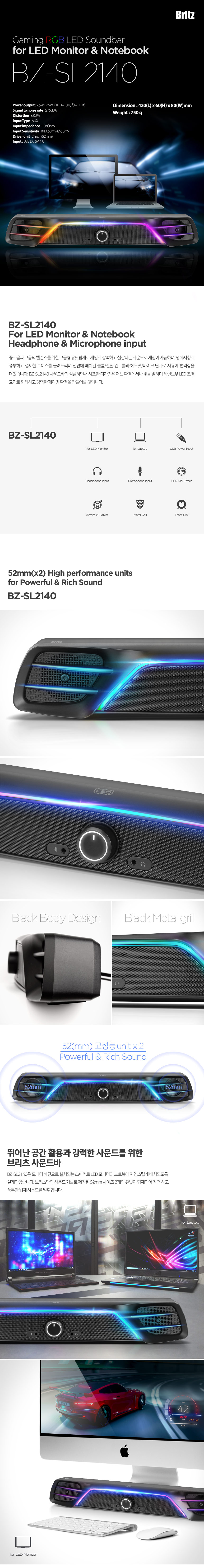 브리츠 BZ-SL2140 게이밍 레인보우 LED 사운드바 스피커 블랙
