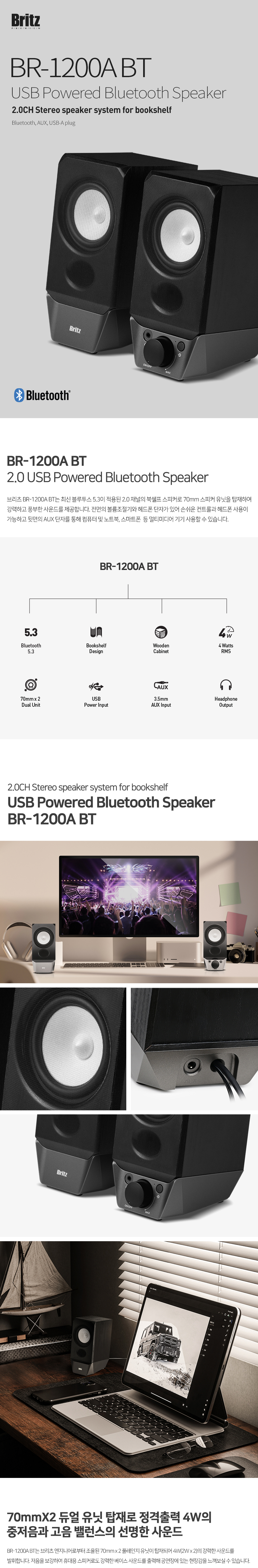 브리츠 BR-1200A BT 2채널 블루투스 올라운더 스피커 블랙