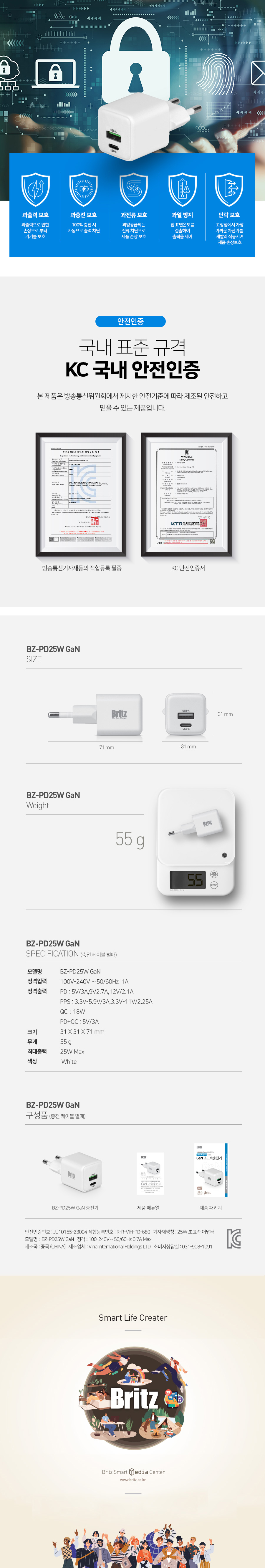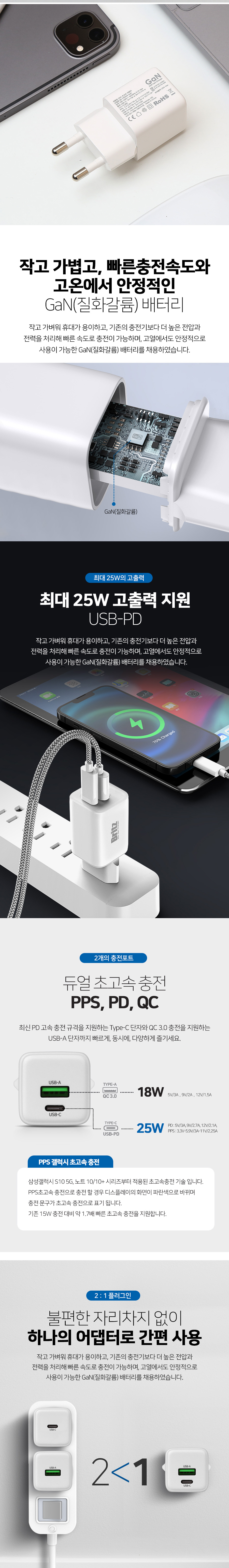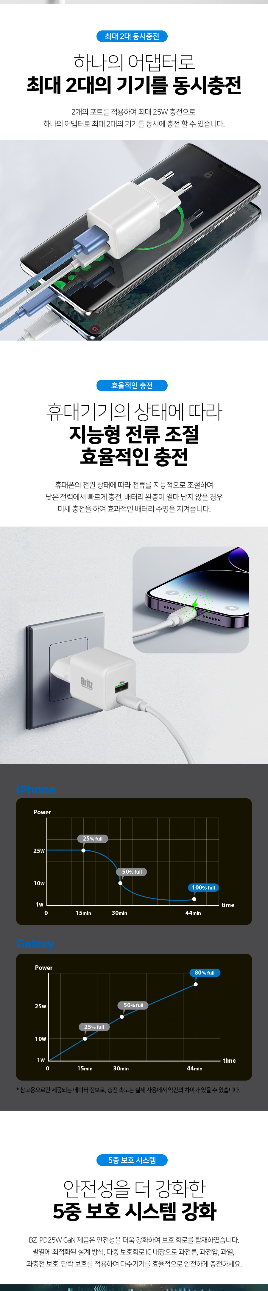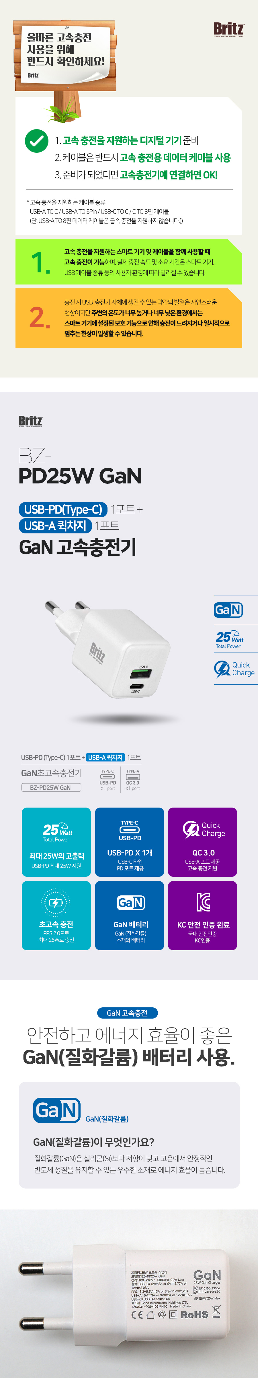 브리츠 BZ-PD25W Gan USB-A USB-C 듀얼 고속 충전기