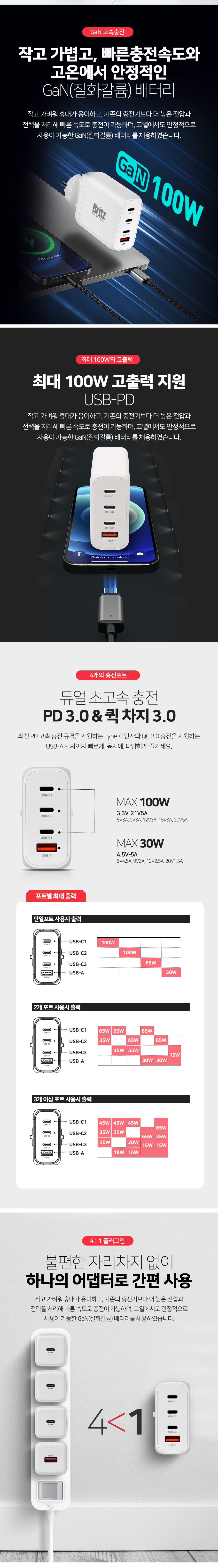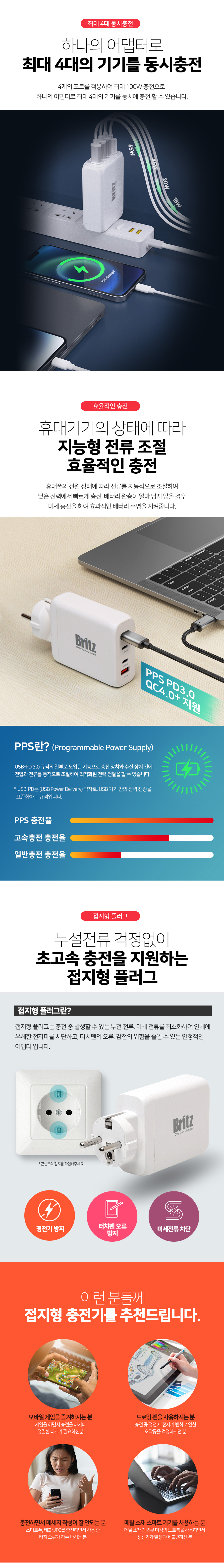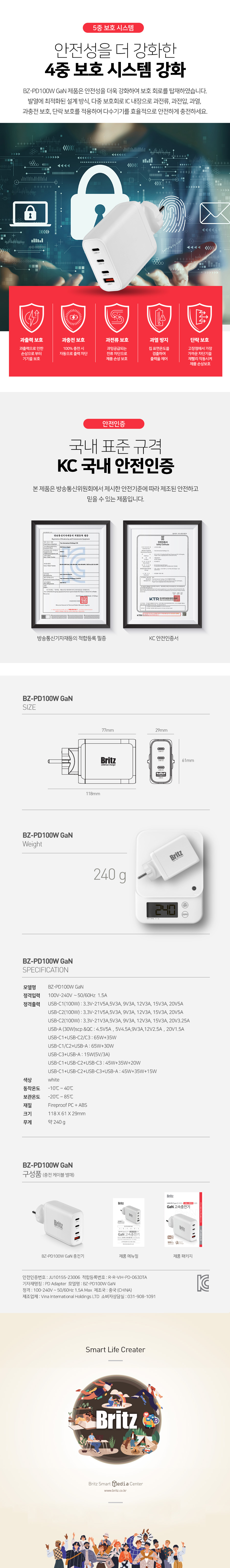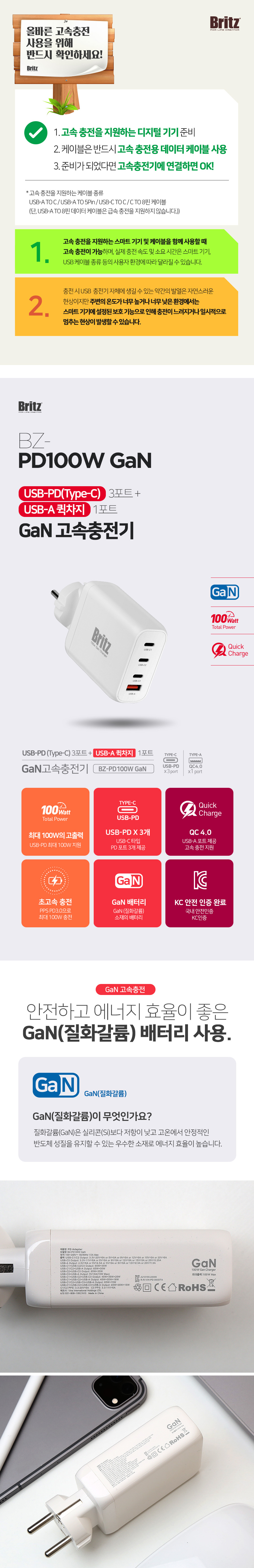 브리츠 BZ-PD100W Gan USB-A USB-C 듀얼 고속 충전기