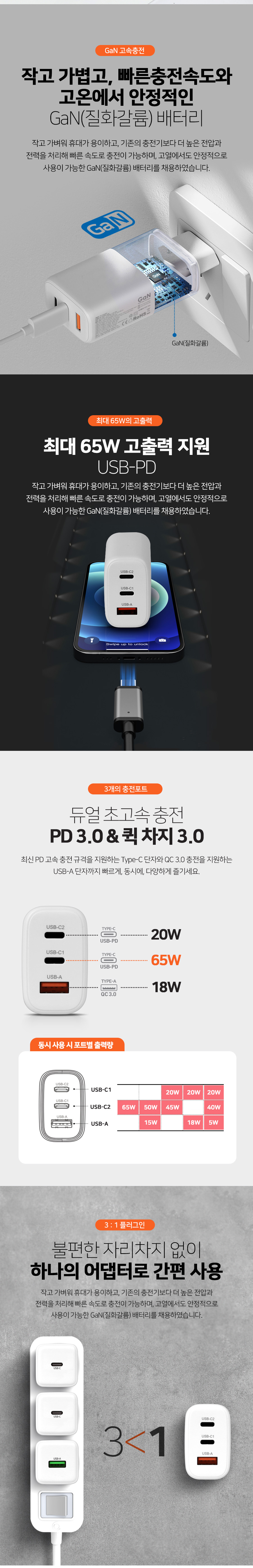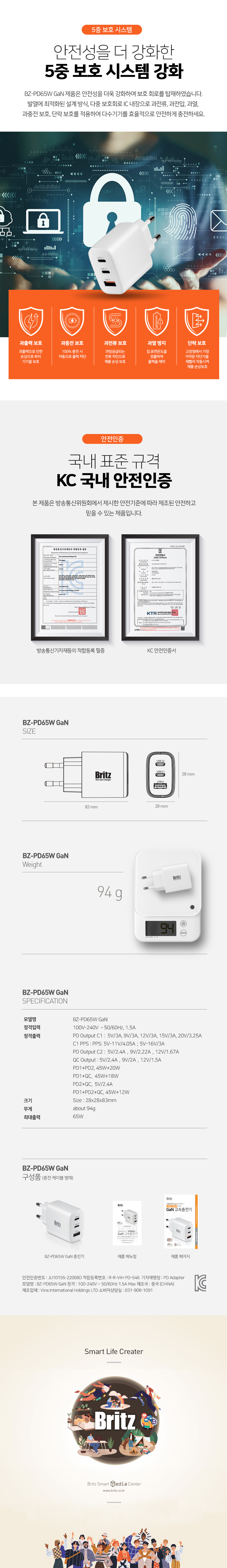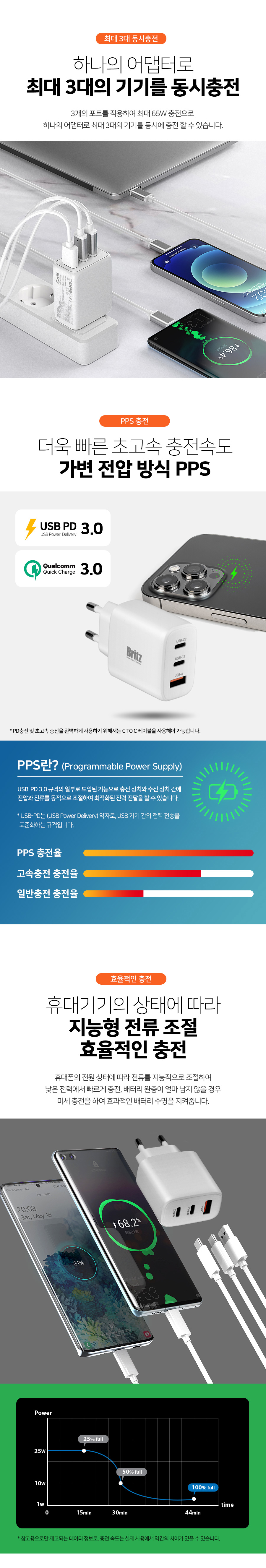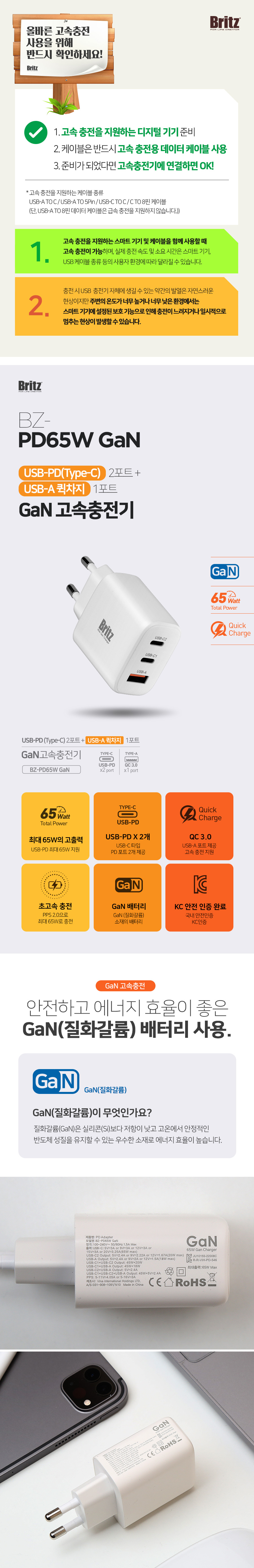 브리츠 BZ-PD65W Gan USB-A USB-C 듀얼 고속 충전기