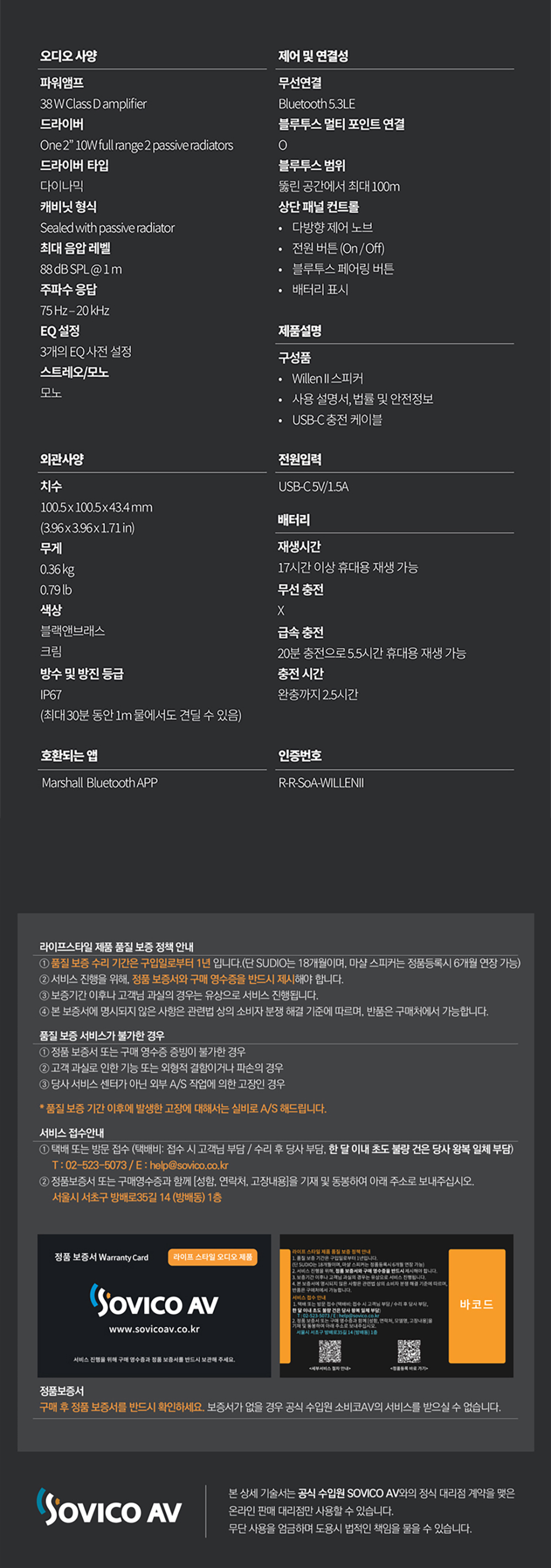 마샬 윌렌 2 블랙 & 브래스 (소비코 AV 정식 발매 제품)