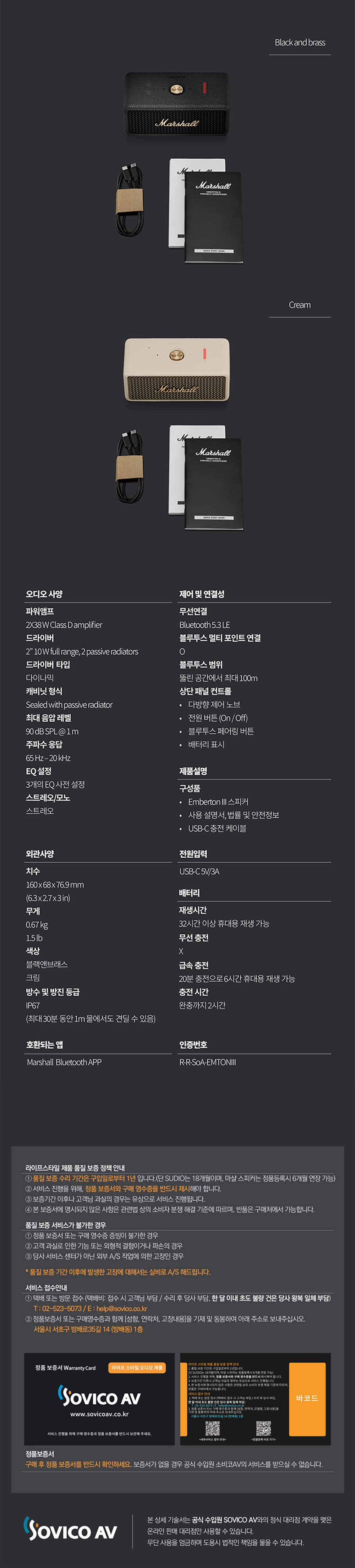 마샬 엠버튼 3 블랙 & 브래스 (소비코 AV 정식 발매 제품)