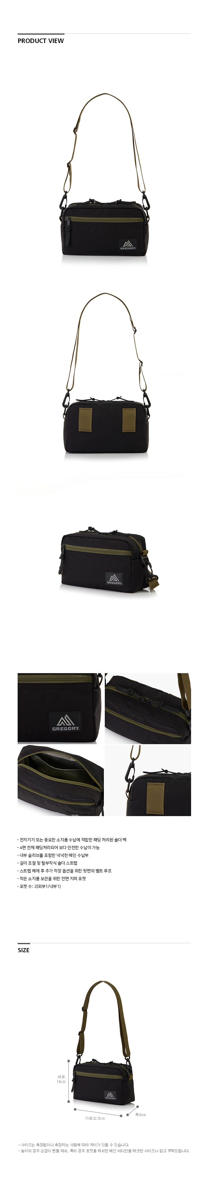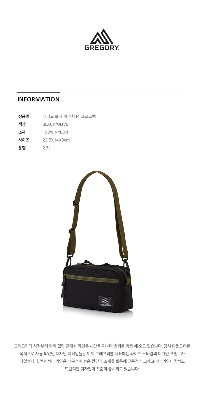그레고리 패디드 숄더 파우치 M 블랙 올리브