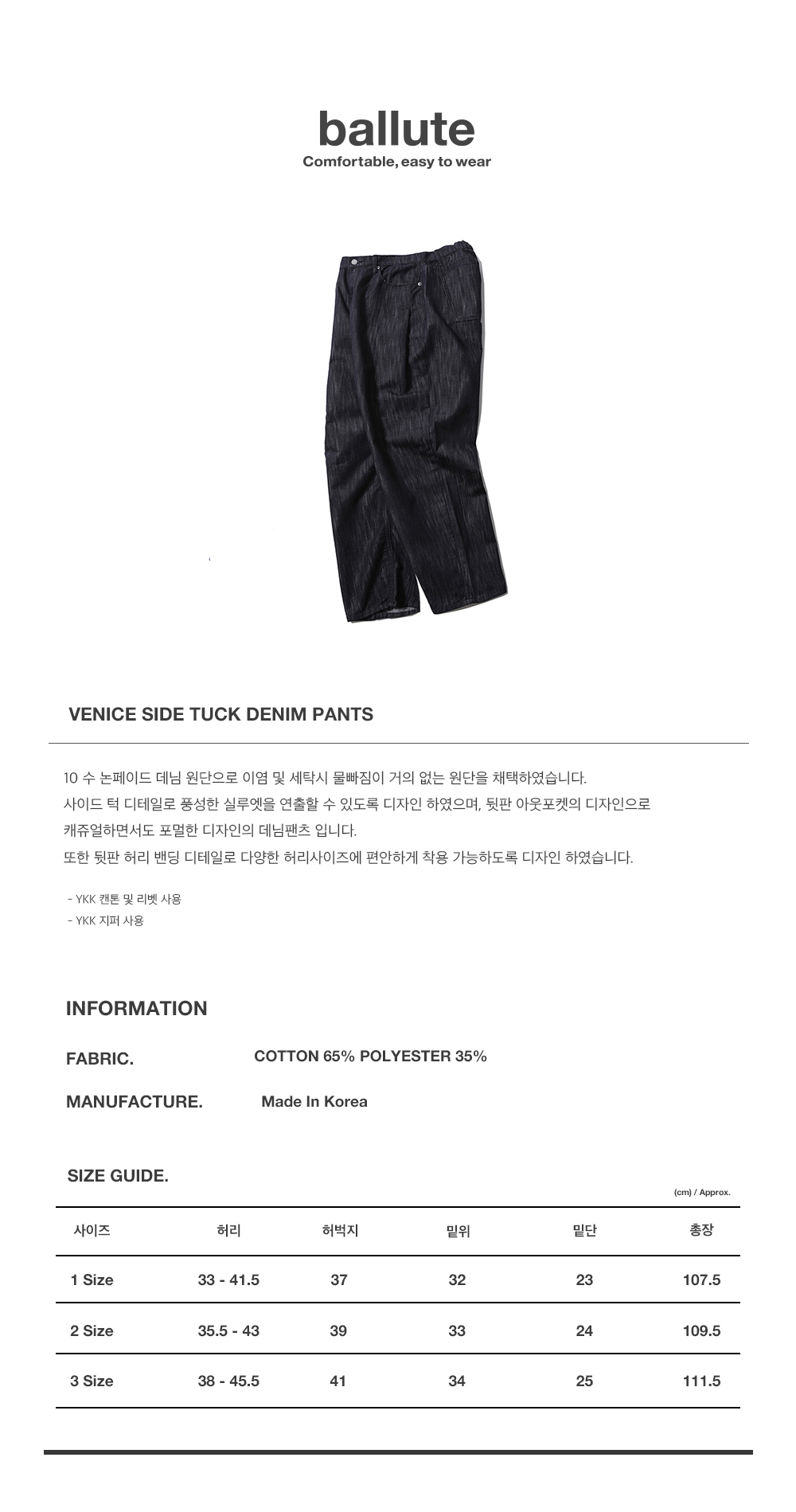 | 허리 | 허벅지 | 밑위 | 밑단 | 총장 |