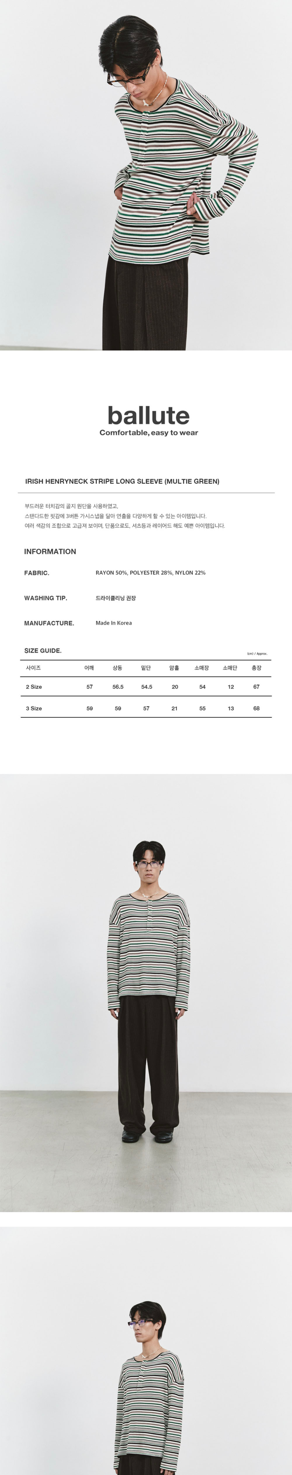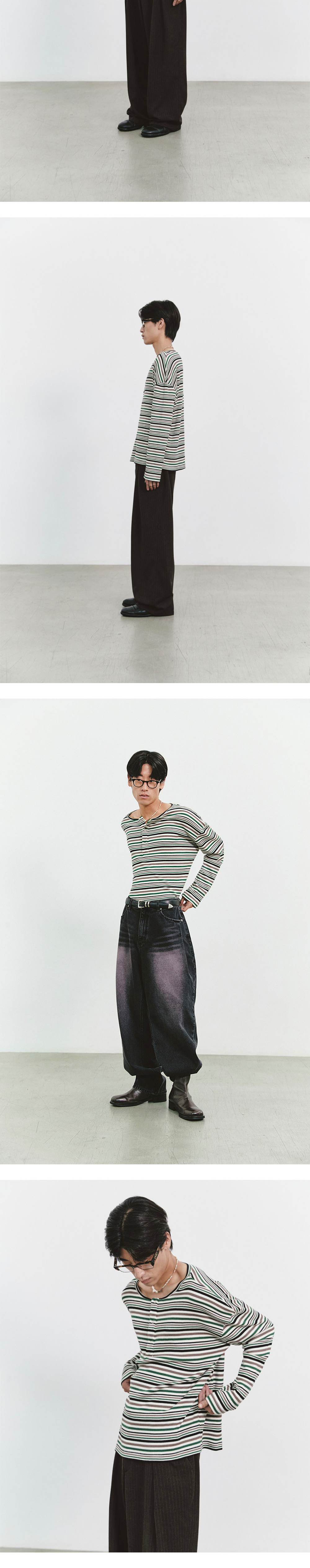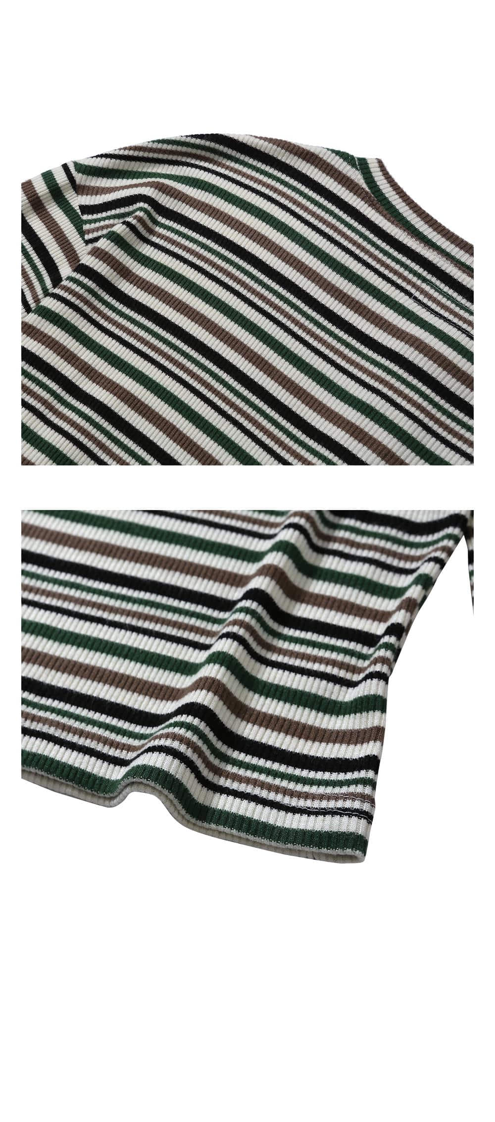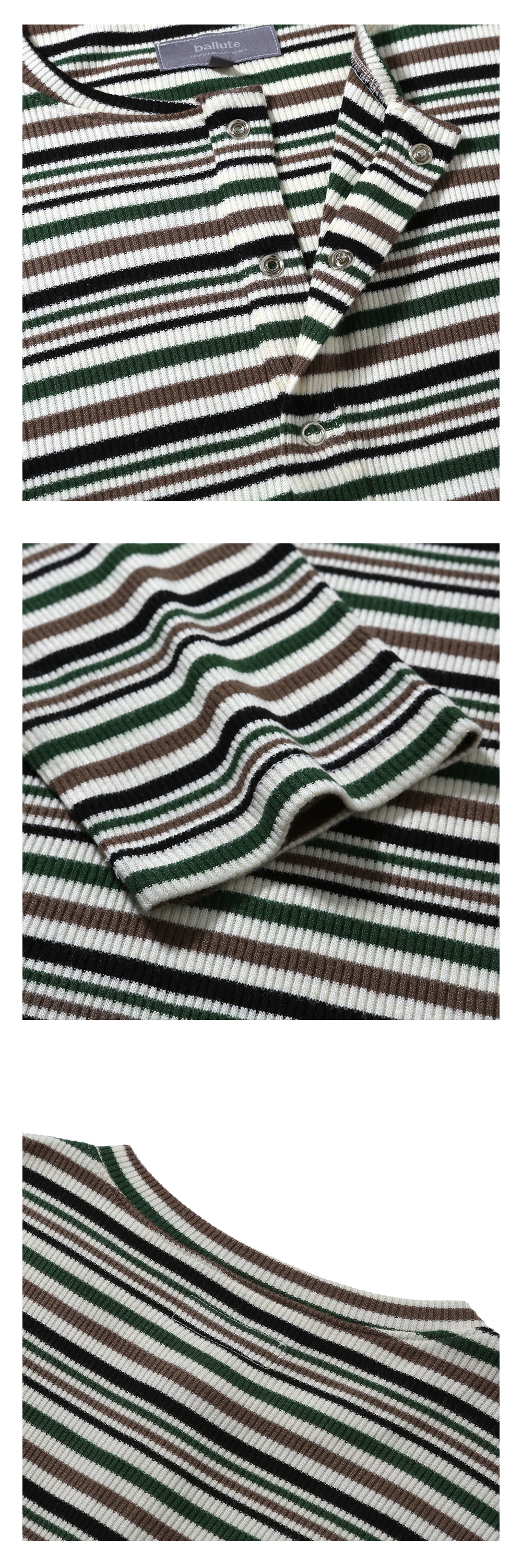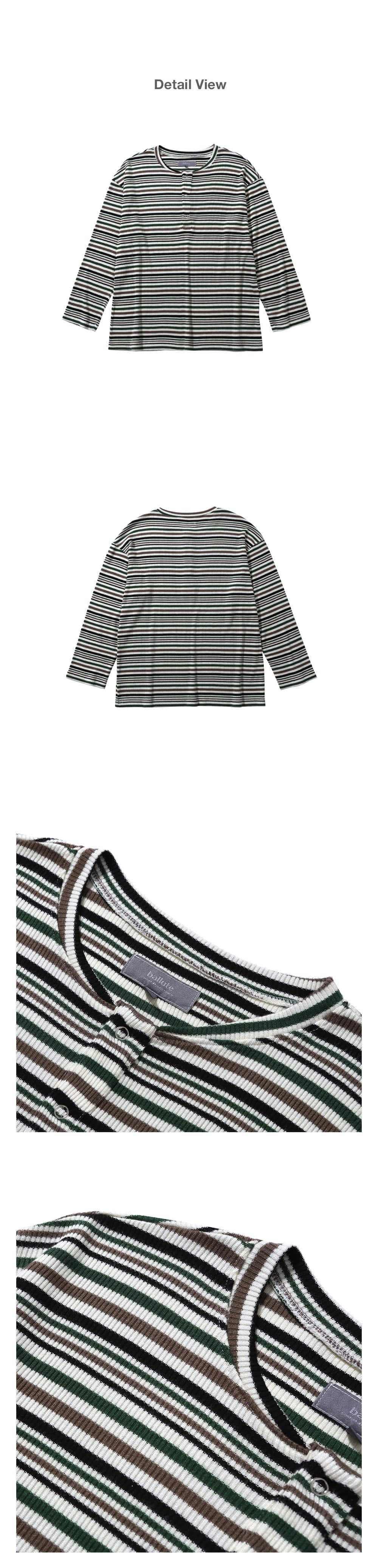 발루트 아이리쉬 헨리넥 스트라이프 롱 슬리브 티셔츠 멀티 그린