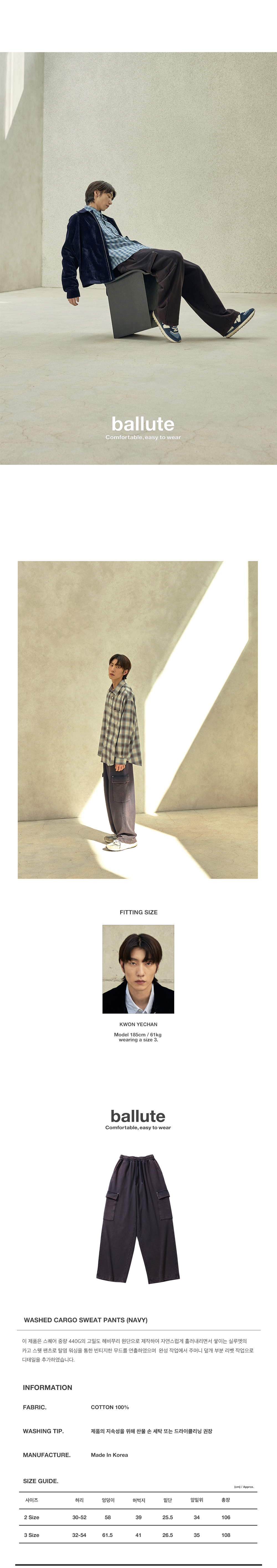 발루트 워시드 다잉 카고 스웨트팬츠 네이비