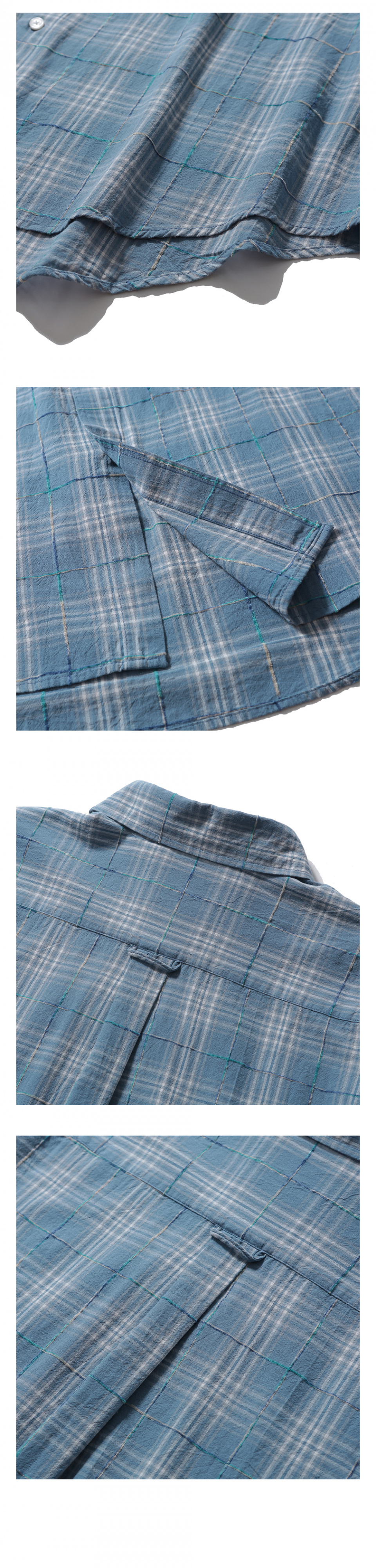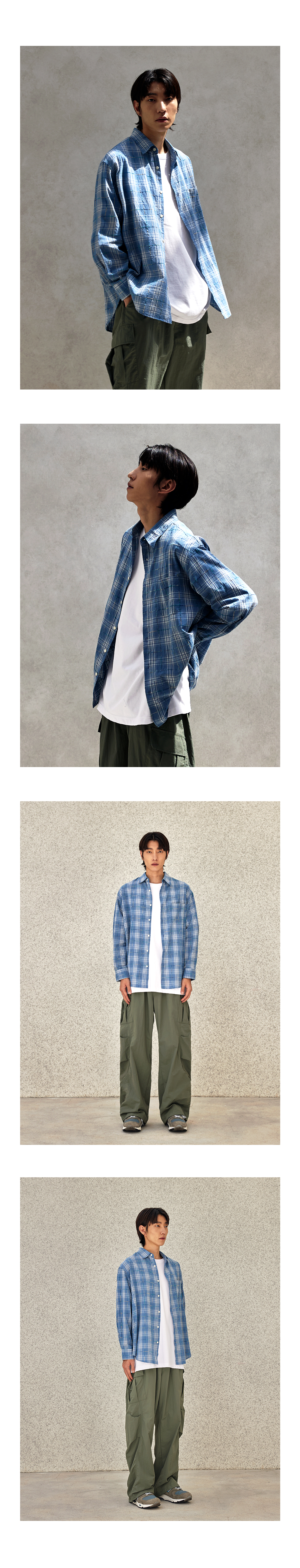 발루트 올 웨더 오버 실루엣 셔츠 블루 체크