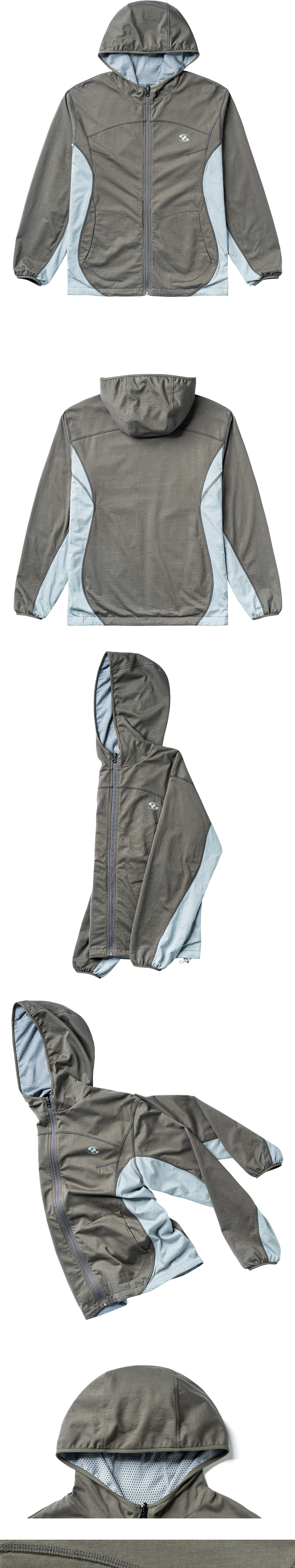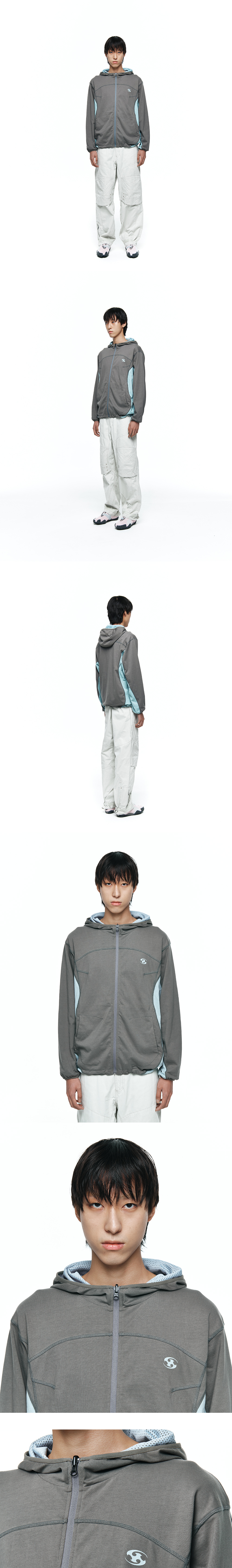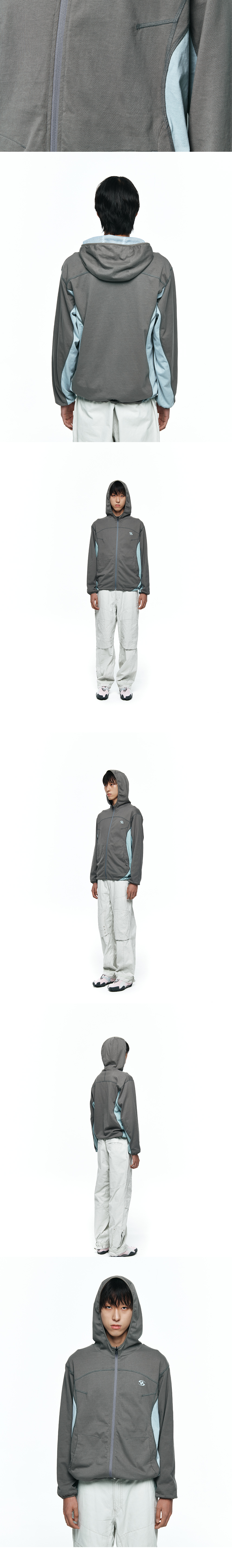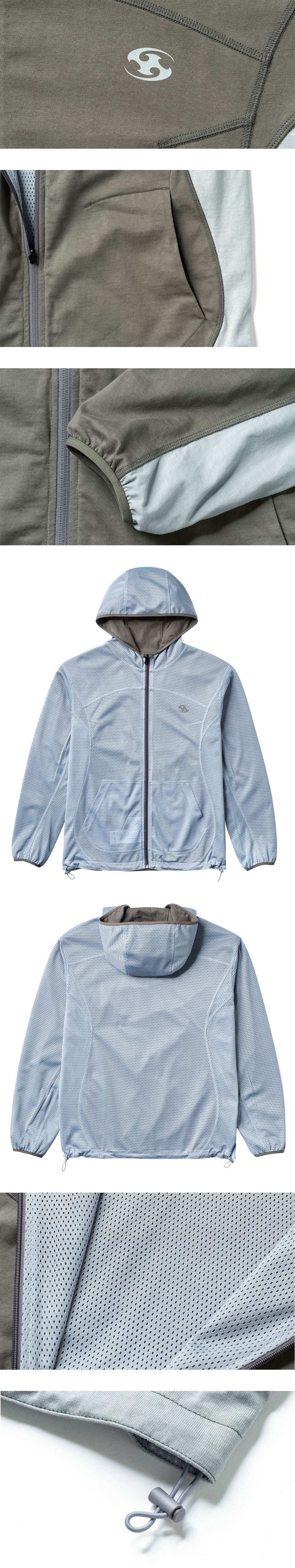 리버시블 가능한 자켓 곡선의 스티치 디테일 소매 접밴드 디테일 및 스트링으로 실루엣 조절가능한 밑단 디테일