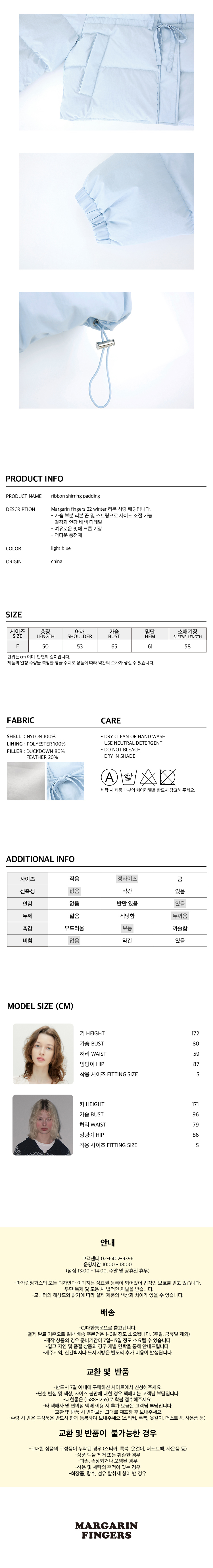 마가린핑거스 리본 셔링 패딩 라이트 블루