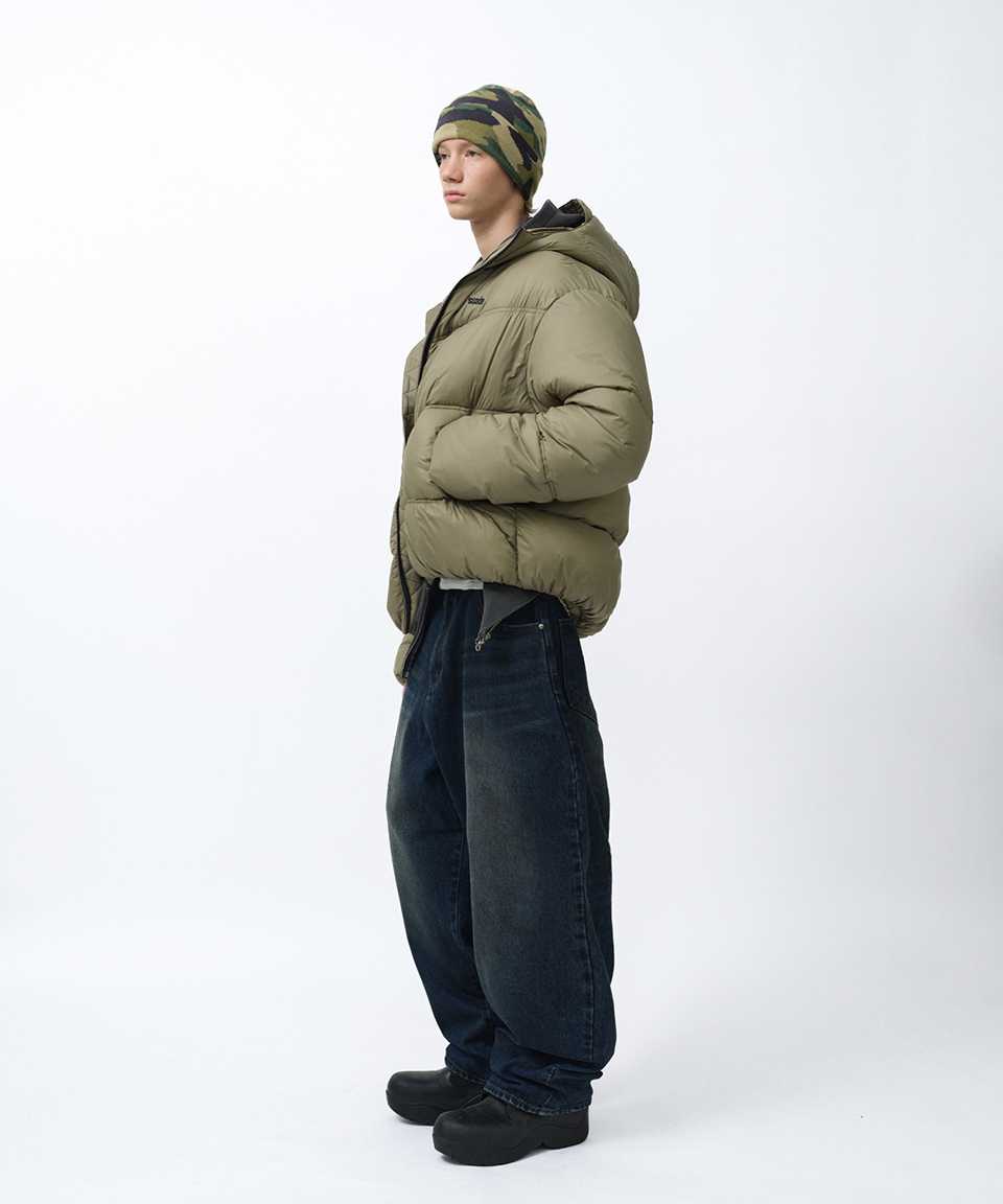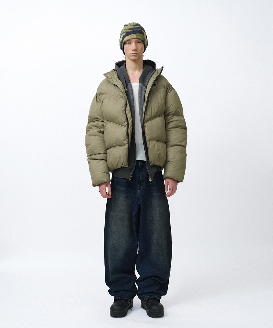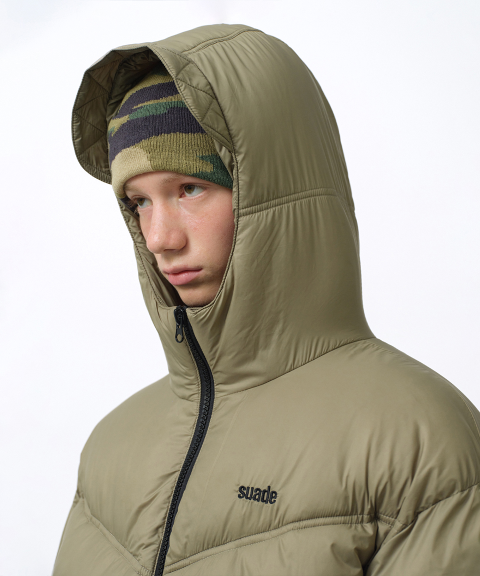스웨이드 후드 퍼퍼 자켓 카키