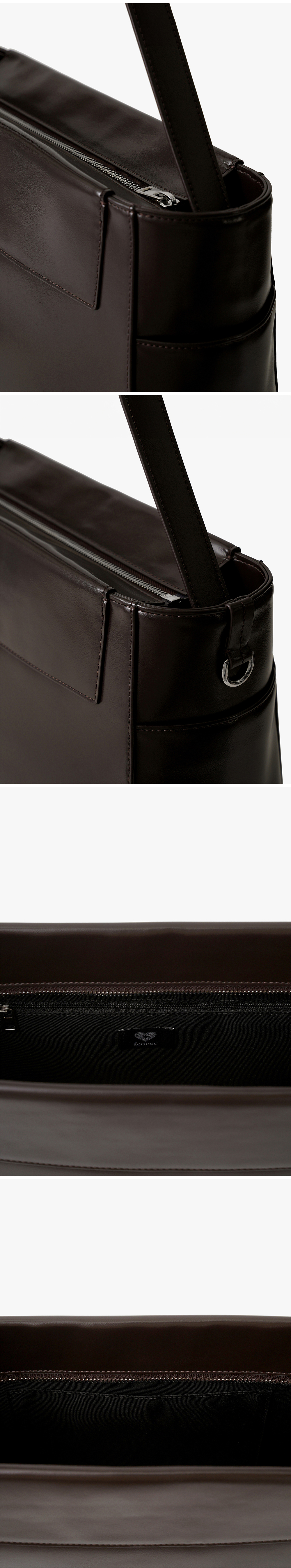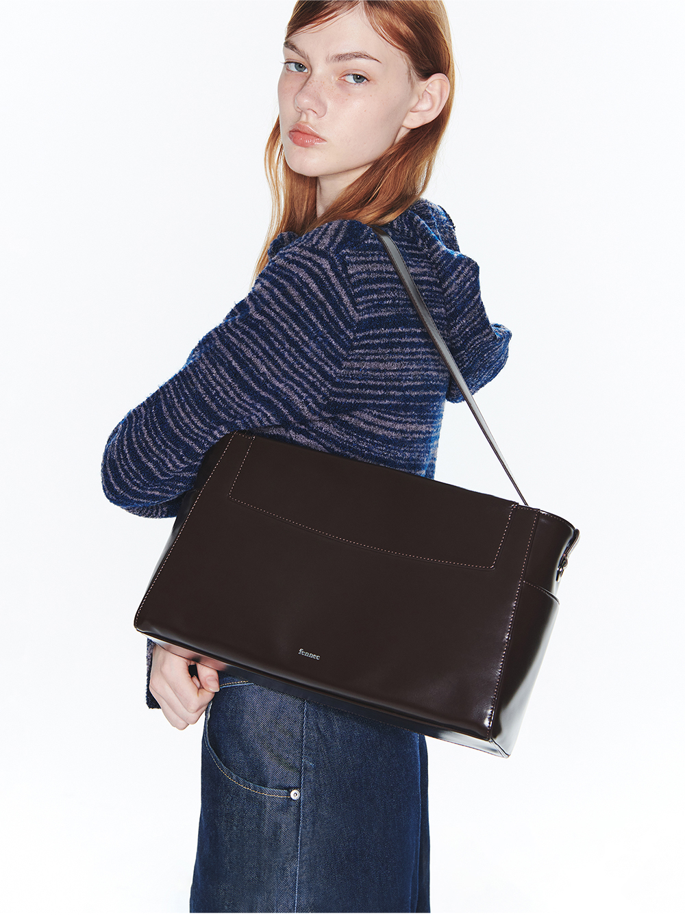 -와이드한 형태감과 실용적인 사이즈의 숄더백 -은은한 광택감이 도는 링클 텍스처의 소재 사용 -아이패드,랩탑 수납이 가능한 사이즈 -지퍼 클로징으로 안전한 수납 가능 -측면 D링 고리 디테일 -내부 지퍼 포켓 1, 오픈 포켓 1 구성 *오픈 지퍼 형태로 부피가 큰 물건을 넣을 때 완전히 분리하여 사용할 수 있습니다.