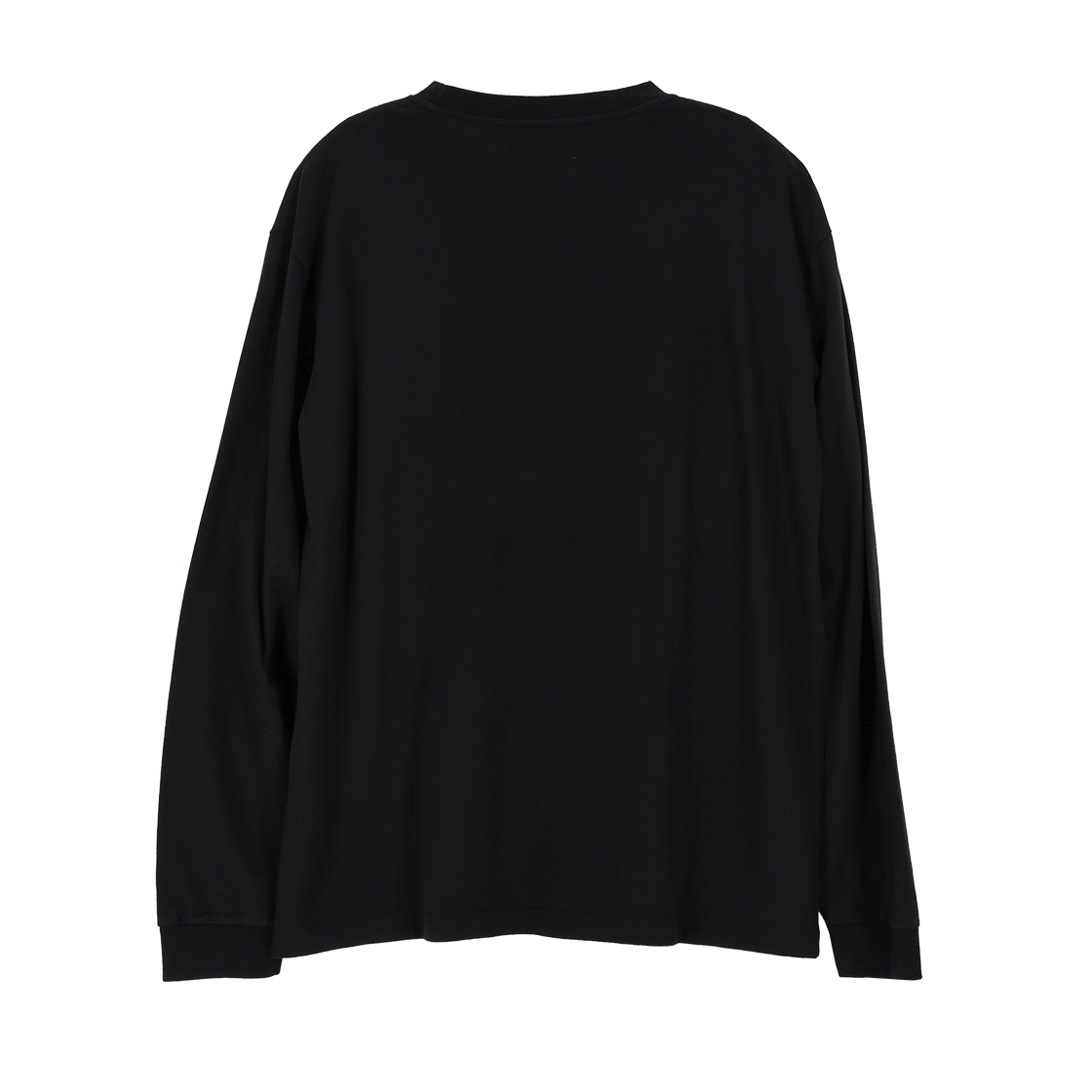 빈티지 가먼트 다잉 롱슬리브 티셔츠 오버핏 실루엣 번형이 없는 워싱 가공 원단 전면 로고 나염 위에 후끼 디테일 전면 하단 금속 부자재 디테일 넥크와 손목 시보리 사용 Vintage clothing dyeing long-sleeved T-shirt Overfit silhouette Washed fabric without deformation Front Logo Print and Spray Techniques Details Metal subsidiary material details in the front Use neck and wrist lib