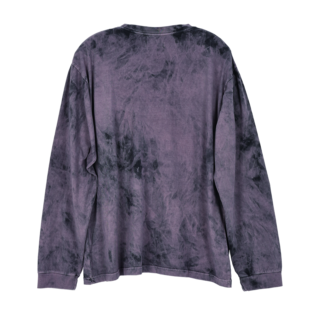 빈티지 가먼트 다잉 롱슬리브 티셔츠 오버핏 실루엣 번형이 없는 워싱 가공 원단 전면 로고 나염 위에 후끼 디테일 전면 하단 금속 부자재 디테일 넥크와 손목 시보리 사용 Vintage clothing dyeing long-sleeved T-shirt Overfit silhouette Washed fabric without deformation Front Logo Print and Spray Techniques Details Metal subsidiary material details in the front Use neck and wrist lib