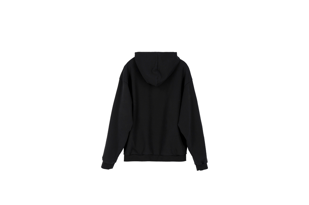 바이오 워싱 오버핏 후드 전면 로고와 그래픽 프린트 전면 둥근 라인의 주머니 손목과 밑단 시보리 사용 변형이 없는 워싱 가공 원단 Bio-washed overfit hood Front Logo and Graphic Print Front Round Line Pocket Using Wrist and Hem Lib Washed fabric without deformation