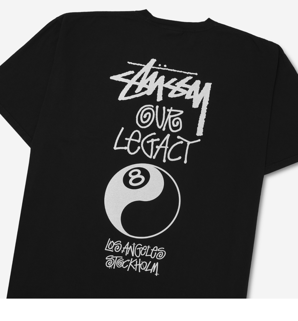 스투시 x 아워레가시 워크샵 8볼 피그먼트 다이드 음양 티셔츠 블랙