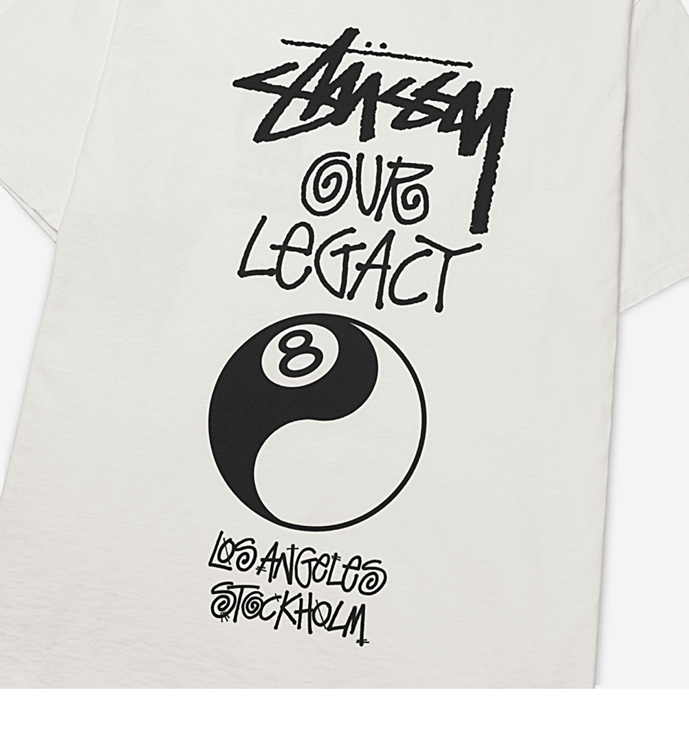 스투시 x 아워레가시 워크샵 8볼 피그먼트 다이드 음양 티셔츠 내츄럴