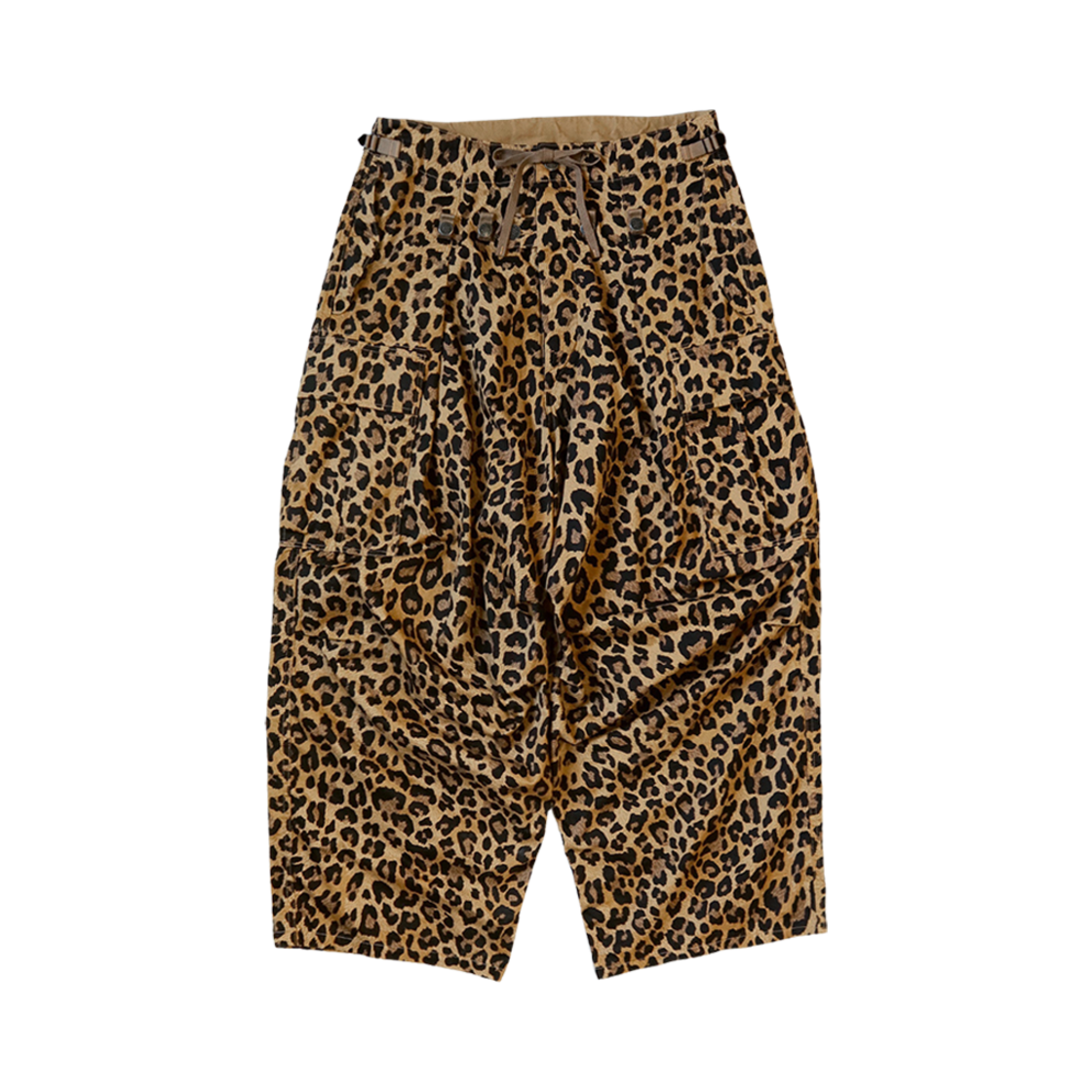 Kapital Cotton Herringbone Leopard Print Jumbo Cargo Pants Brown
