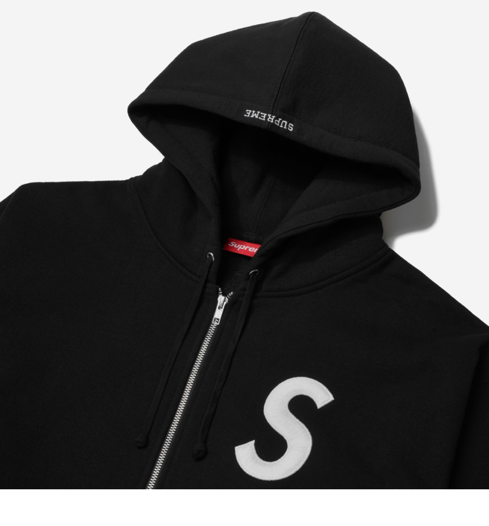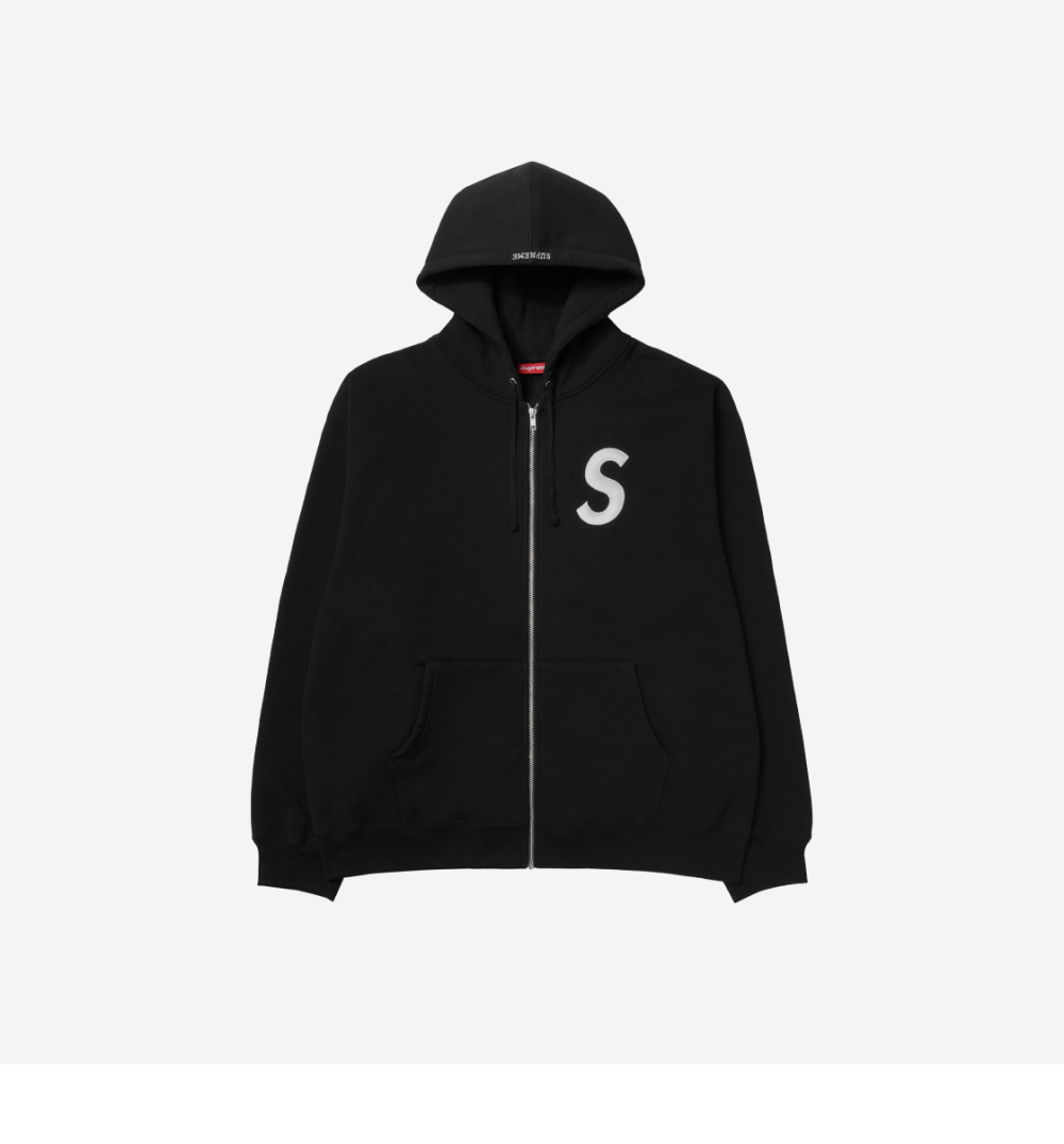Supreme S Logo Zip Up Hooded Sweatshirt Black - 24FW