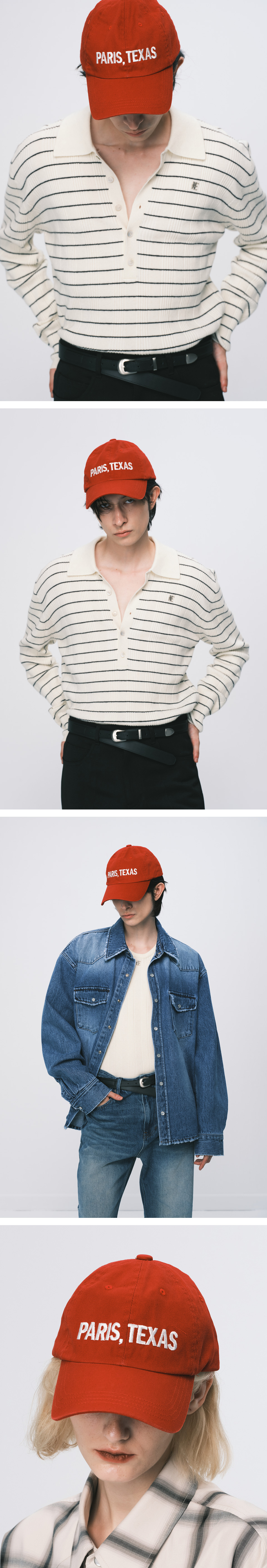 시즌 컨셉 PARIS, TEXAS 문구가 자수처리된 볼캡으로, 심플한 디자인에 컬러 포인트로 다양한 착장에 쉽게 매치할 수 있는 아이템입니다.