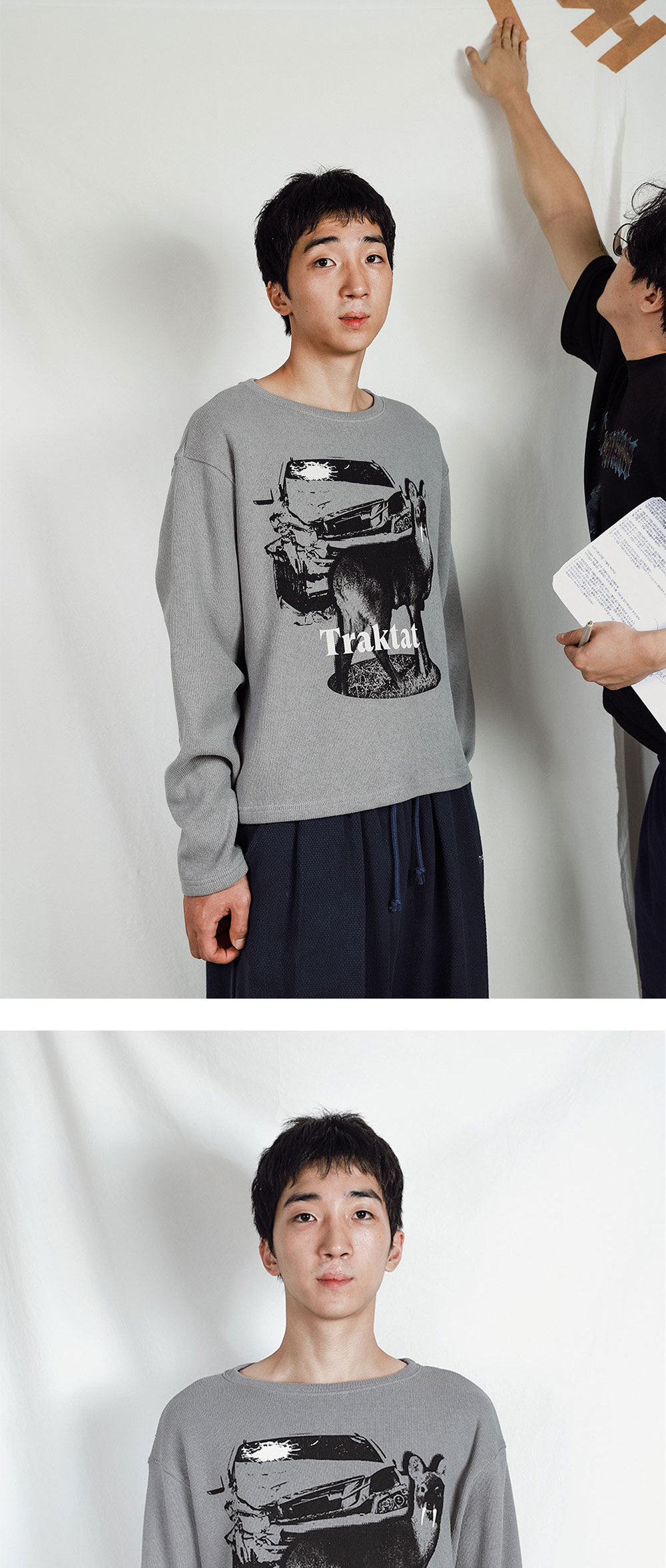 /24FW UMWEG/ Unarmed Water Deer Wins Elbow Patch Boat Neck Long Sleeve Knit Gray 고라니가 이긴다 엘보우 패치 보트넥 니트 롱슬리브 그레이 "Unarmed Water Drinker"(비무장지대에서 물 마시는 동물)라는 별명을 지닌 고라니. 아이러니하게도 고라니는 세계 멸종위기동물이자 한국의 유해야생동물입니다. 고라니가 차량과 싸워 이기는 내용을 영화화한다면, 그 영화의 하이라이트는 어떨까 하는 아이디어에서 디자인하였습니다. Material/원단 - Organic Cotton 95% Recycled Polyester 5% 유기농 면 95% 재생 폴리에스터 5% - Double Knit 사카리바 조직 - Biowashed 바이오워싱 - Elbow Patches: Leather 100% 팔꿈치 덧댐: 소가죽 100%