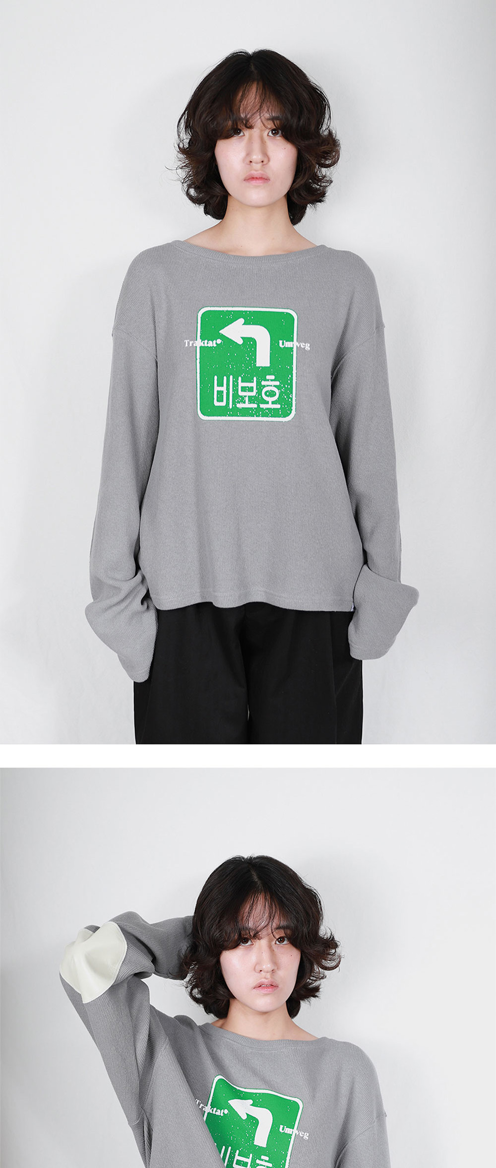 트락타트 비보호 좌회전 엘보우 패치 보트넥 롱슬리브 그레이