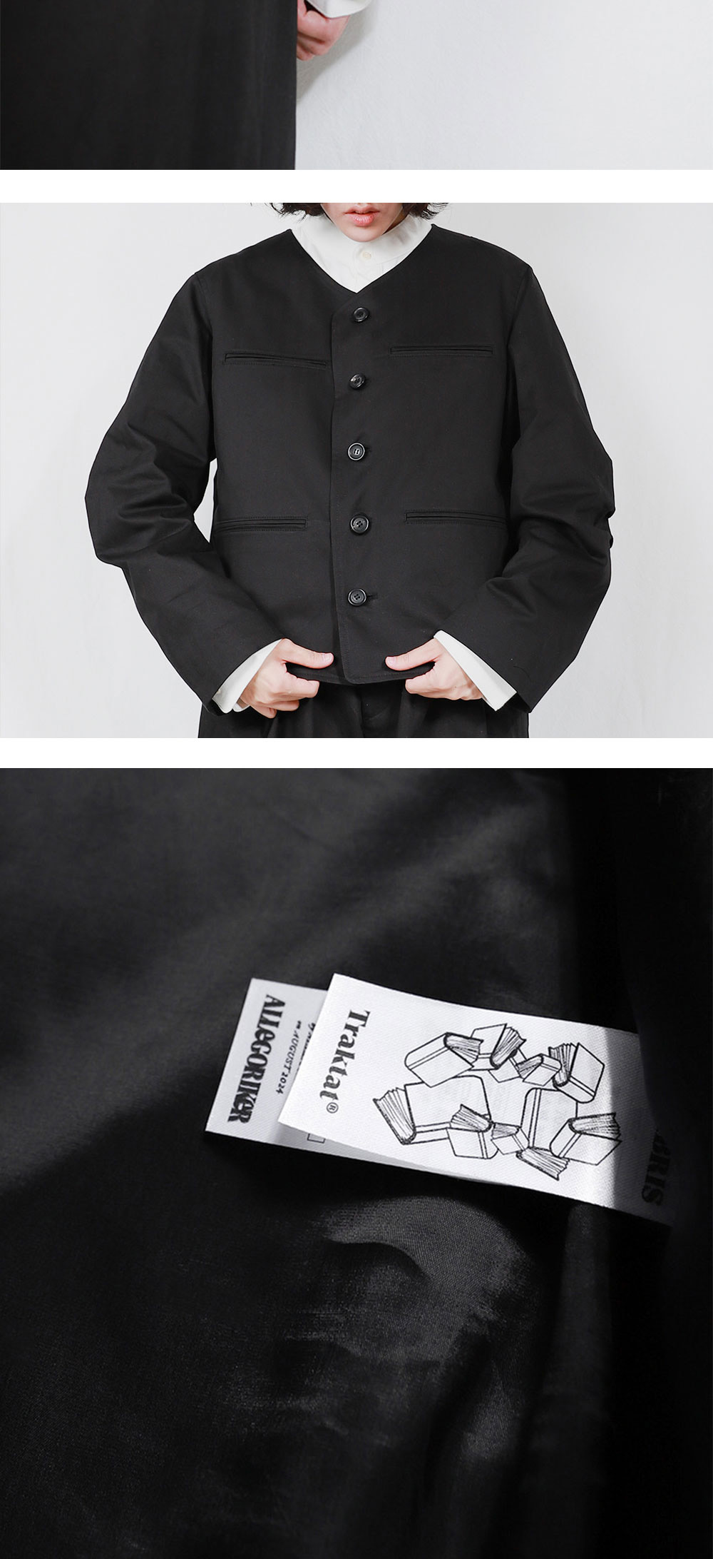 4WD 카라리스 자켓은 '트러커 자켓'에 대한 전유입니다. 전면에 있는 네 개의 가로 포켓은 실용성에 더불어, 전천후 기동가능한 사륜구동 자동차를 닮고자 한 장치의 일환입니다. 팔꿈치에 잡힌 세 개의 턱과 어깨 뒷 부분에 잡힌 하나의 긴 턱이 편안한 움직임과 쾌적한 활동을 보장합니다. 면100% 고밀도 해링본 트윌로 짜여진 원단을 사용했습니다. 고시감(원단의 단단함)이 좋아 전체적인 실루엣을 잘 잡아주며, 고밀도로 직조되어 내구성이 뛰어납니다. Detail/상세 - 카라리스 자켓 - 전면부 네 개의 가로 포켓 - 팔꿈치 양쪽에 부채꼴 형태의 세 개의 턱 - 후면부 양 어깨에 하나씩 긴 핀턱 - Traktat des Allegoriker 각인 단추 Material/원단 - 겉감: Cotton 면 100% 고밀도 해링본 트윌로 짜여진 원단을 사용했습니다. - 안감: 큐프라 100% (Cotton 면 100%)