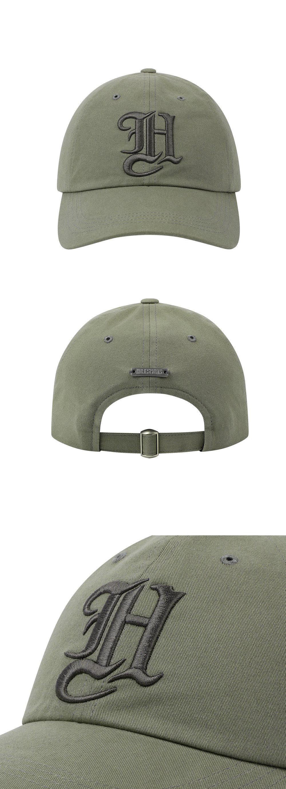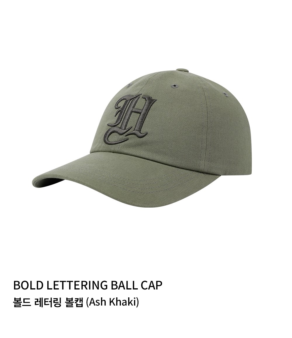 에이치덱스 볼드 레터링 볼캡 에쉬 카키