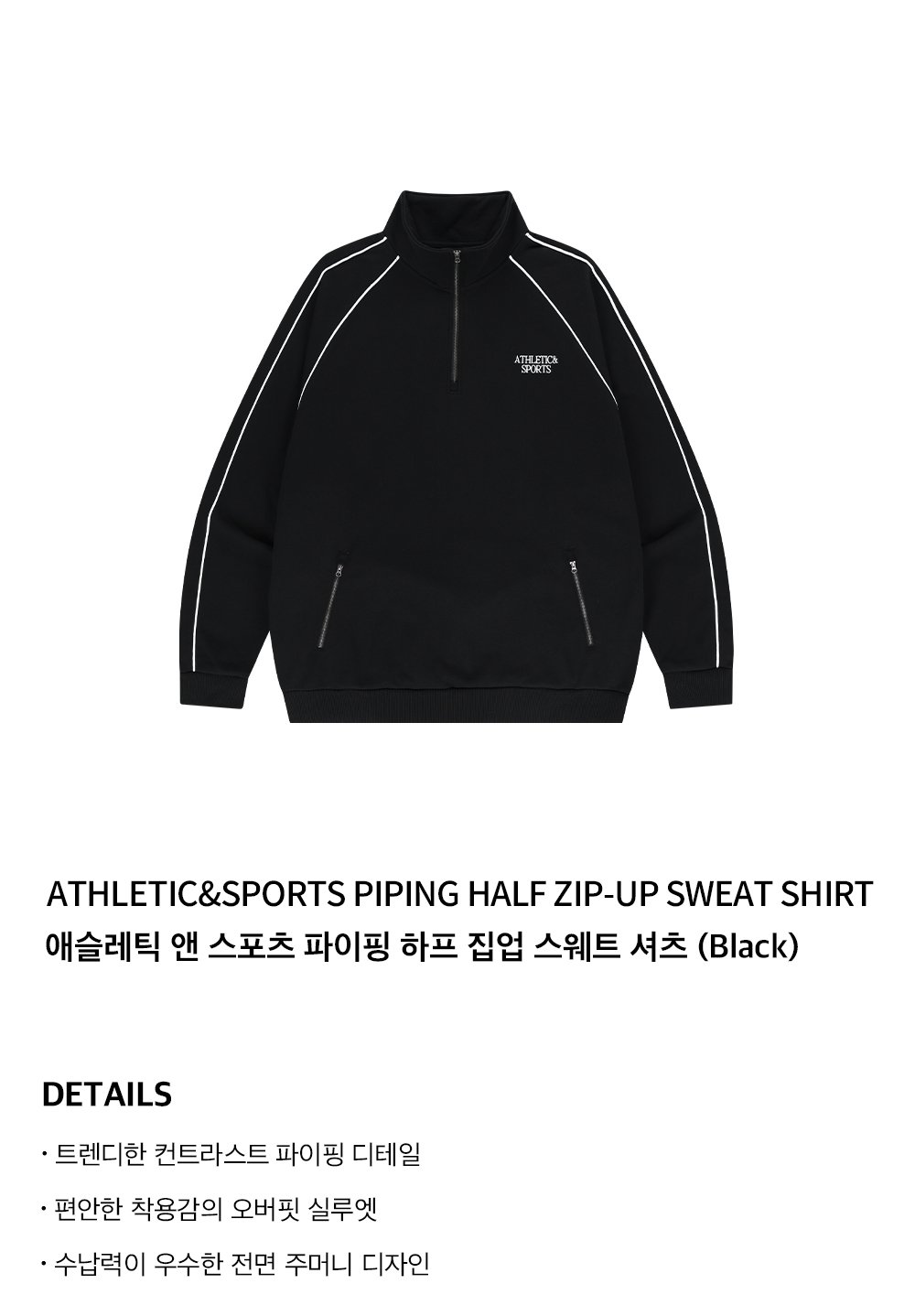 에이치덱스 애슬레틱 앤 스포츠 파이핑 하프 집업 스웨트 셔츠 블랙