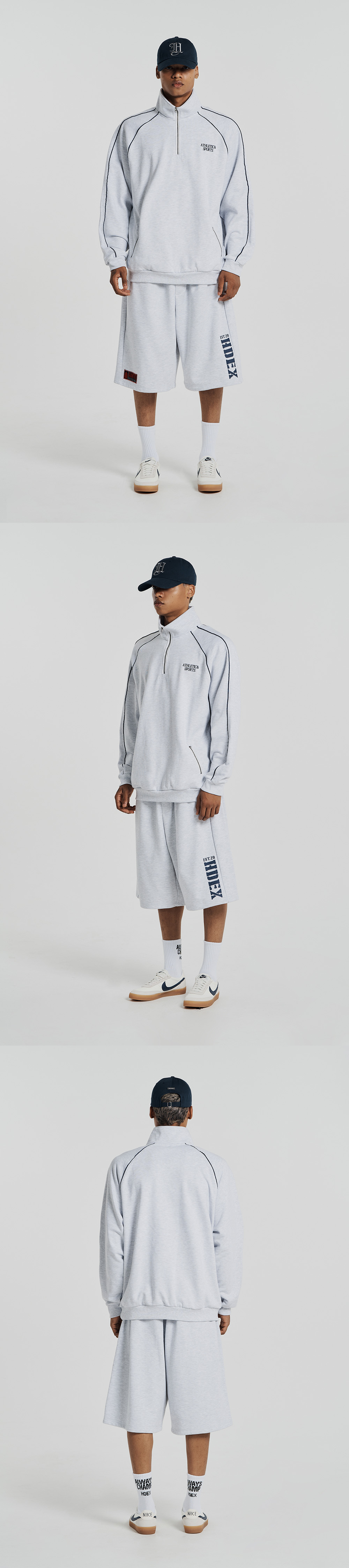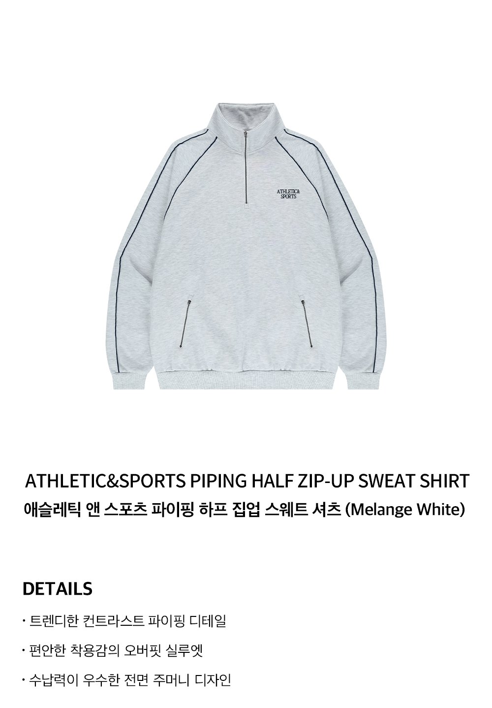 에이치덱스 애슬레틱 앤 스포츠 파이핑 하프 집업 스웨트 셔츠 멜란지 화이트