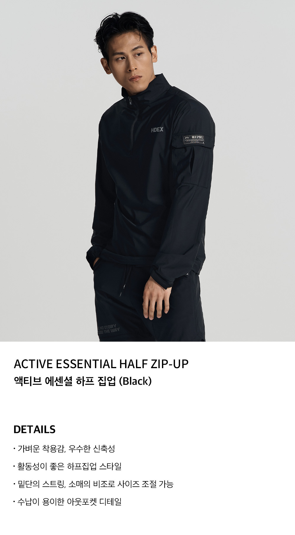 에이치덱스 액티브 에센셜 하프 집업 블랙
