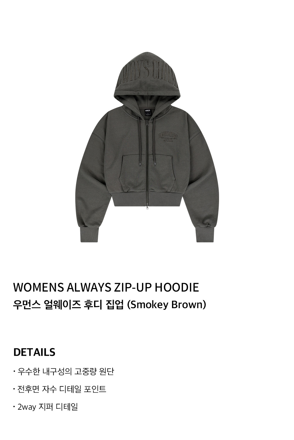 에이치덱스 우먼스 얼웨이즈 후디 집업 스모키 브라운