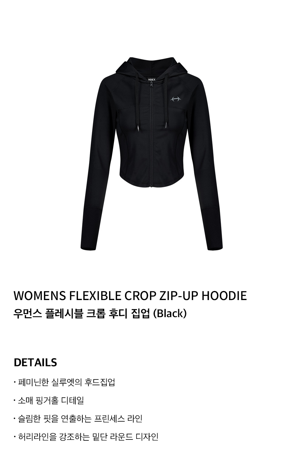에이치덱스 우먼스 플레시블 크롭 후디 집업 블랙