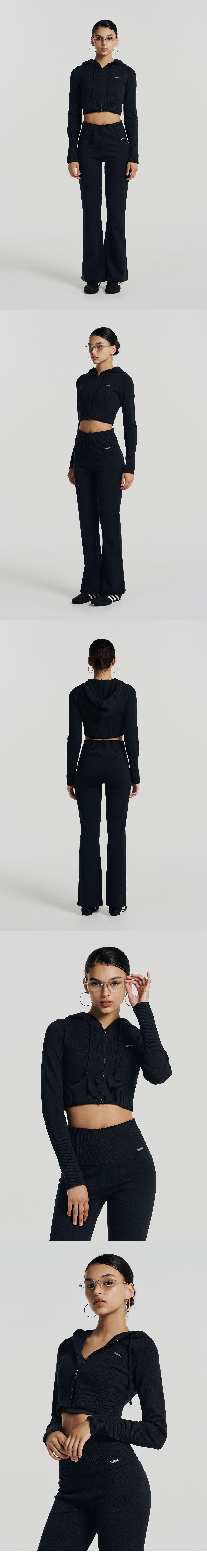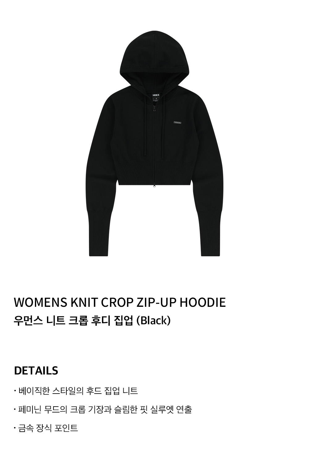 에이치덱스 우먼스 니트 크롭 후디 집업 블랙
